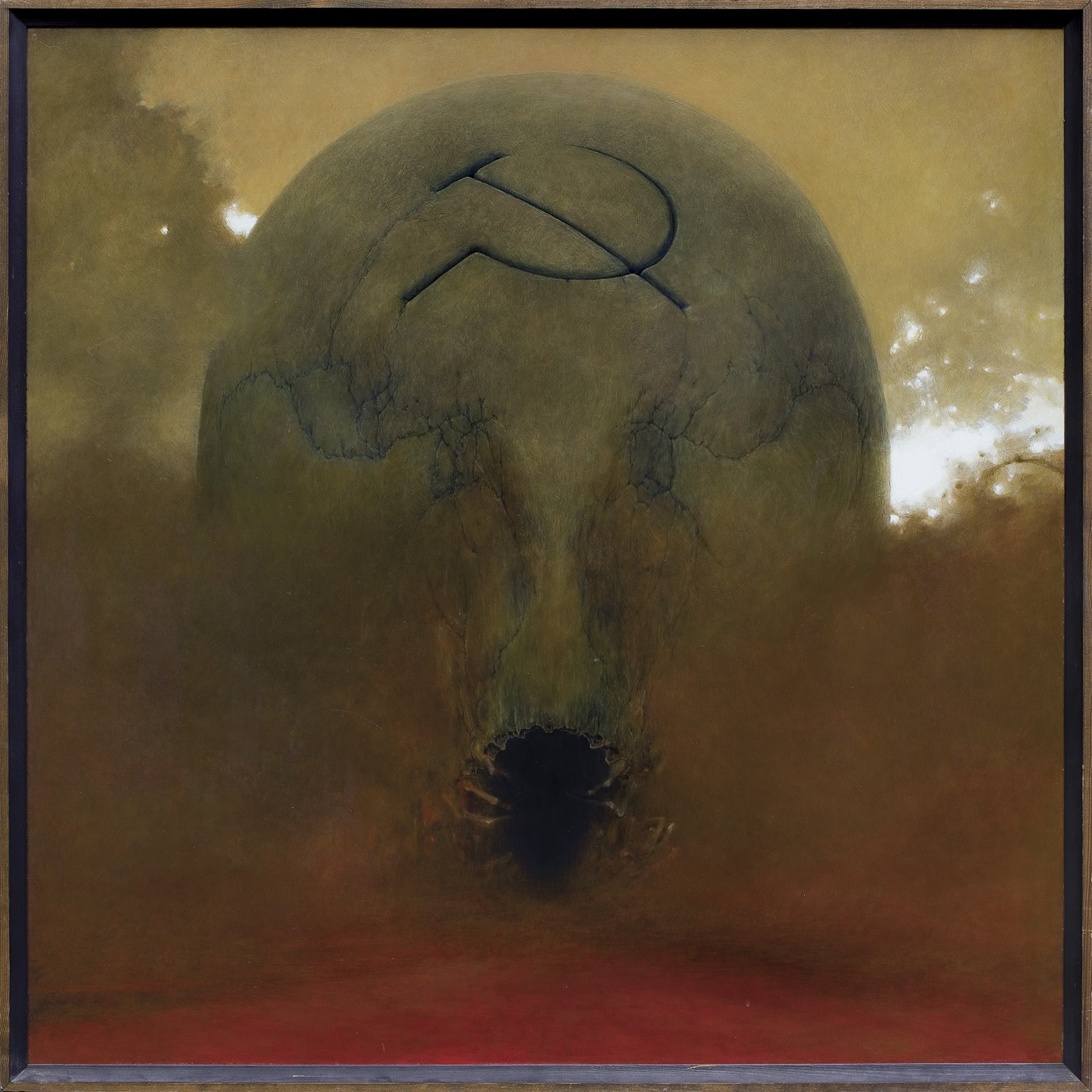 Zdzisław Beksiński (Sanok 24 II 1929 - Warszawa 21 II 2005) studiował w latach 1947-1952 na Wydziale Architektury Politechniki Krakowskiej. Był artystą samoukiem, który osiągnął niekwestionowaną pozycję w polskiej sztuce współczesnej, potwierdzoną obecnością jego prac na prestiżowych wystawach i w kolekcjach muzealnych. Początkowo zajmował się fotografią, którą interesował się od lat studenckich, po 1956 zyskując uznanie jako twórca fotogramów o estetyce opartej o efekty fakturowe. W latach 1958-1962 tworzył abstrakcyjne obrazy-reliefy o bogatej fakturze, głównie metalowe, będące odmianą malarstwa materii. Pod koniec tego okresu powstawały ażurowe formy o kształtach figur i pełnoplastyczne rzeźby w metalu. Kolejnym etapem jego twórczości były lata 1962-1974, kiedy poświęcał się głównie rysunkowi. W latach 60. rysował piórkiem i tuszem figuralne kompozycje odznaczające się karykaturalną deformacją postaci. Od końca lat 60. tworzył rysunki węglem i kredkami, będące monochromatyczną odmianą jego równoległej twórczości malarskiej. Od 1974 zajmował się niemal niepodzielnie malarstwem. Jego charakterystyczny styl bazował na perfekcji technicznej, której towarzyszyła niezwykłość wizji. Malował świat po katastrofie, naznaczony piętnem śmierci i rozpadu. Jego obrazy zaludniają postaci i stwory o ludzkich wprawdzie bądź zwierzęcych kształtach, lecz o cechach fantomów, automatów lub rozpadających się trucheł. Artysta nie nadawał swym obrazom i rysunkom tytułów (poza porządkującymi symbolami), akcentując w ten sposób swój brak zainteresowania dla literackiej strony przedstawień. Sam mówił, że malując całkowicie poddaje się wizji, „fotografuje“ ją. W ostatnich latach włączył do swego warsztatu artystycznego elektroniczne techniki generowania obrazu, które wykorzystywał do tworzenia komputerowych fotomontaży. Sztuka Beksińskiego, wielokrotnie wystawiana i omawiana, budzi skrajne emocje wśród znawców i publiczności.