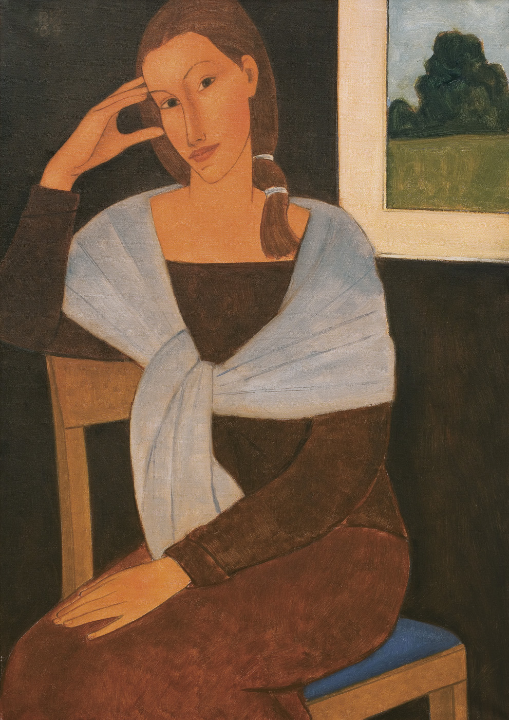 Roman Zakrzewski (Oświęcim 1955- Kraków 2014) ukończył krakowską ASP w 1985. Wystawiał swe prace w galeriach promujących sztukę tzw. realizmu magicznego, m.in. w Galerii Katarzyny Napiórkowskiej w Warszawie i w domach aukcyjnych. Artysta, inspirujący się ewidentnie sztuką Amadeo Modiglianiego i malarstwem epok gotyku i Quattrocenta, opracowuje na różne sposoby jeden temat – wizerunek siedzącej en face lub en trois quatre dziewczyny o wydłużonej sylwetce, ubranej w wąską suknię o dekoracyjnym wzorze. Przez okno w tle roztacza się widok na rozległy, ujęty z lotu ptaka pejzaż.