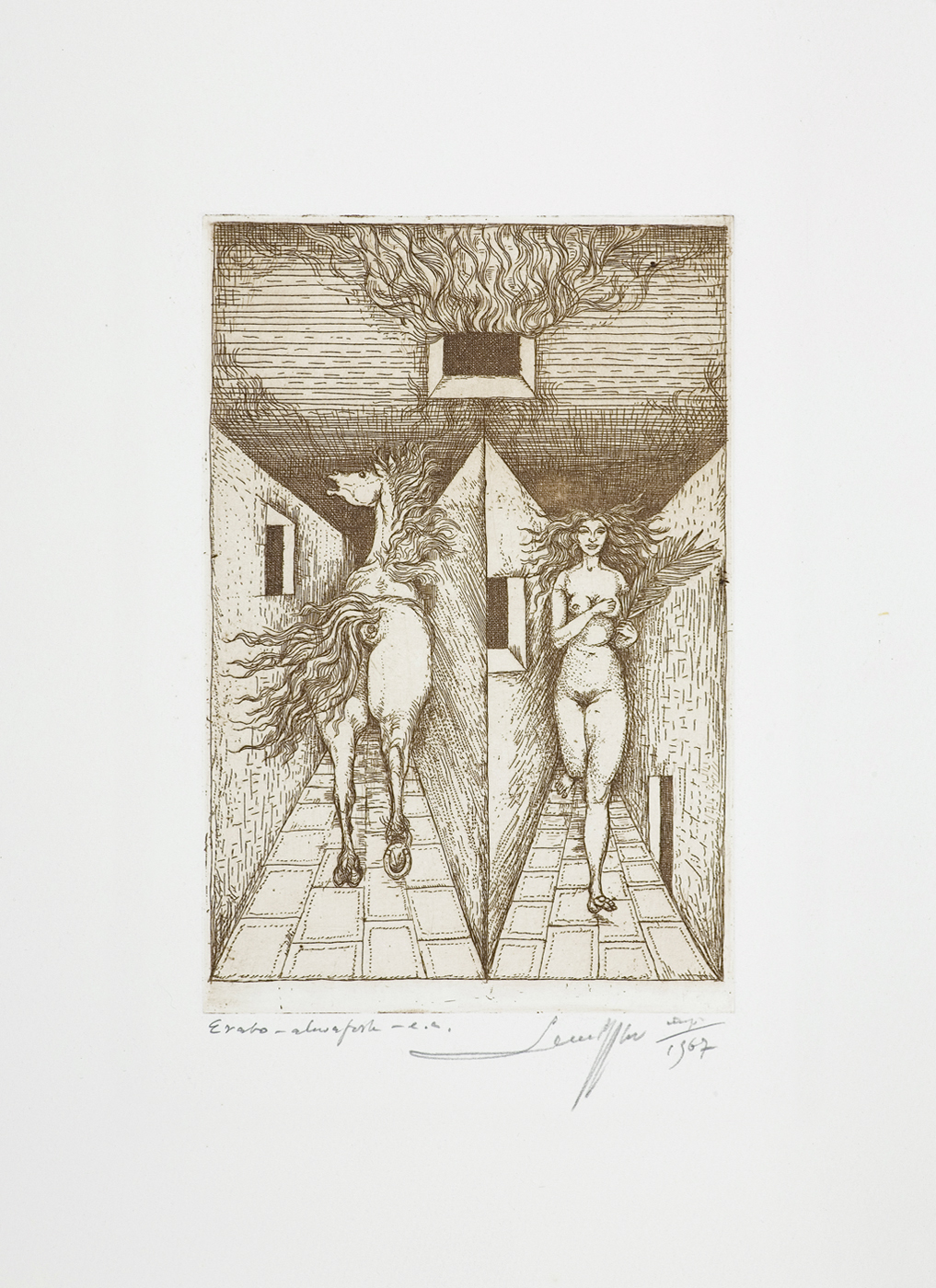 Leszek Rózga (Zgierz 1924 - Łódź 2015) - artysta grafik. W latach 1940-1945 przebywał na robotach w Niemczech, gdzie po zakończeniu wojny pracował w teatrze amatorskim i uczył się prywatnie malarstwa (1945-1947). Studiował w Państwowej Wyższej Szkole Sztuk Plastycznych w Łodzi (1948-1951) i na Wydziale Grafiki Propagandowej w Katowicach - filii ASP w Krakowie, gdzie obronił dyplom w 1954. W latach 1967-1994 był wykładowcą (od 1979 profesorem) w uczelni łódzkiej, gdzie stworzył szkołę metaforycznej, ekspresyjnej sztuki graficznej. Brał udział w licznych wystawach w kraju i za granicą, zdobywając często nagrody. Był również laureatem wielu nagród państwowych, resortowych, regionalnych itp., jak: Nagrody Ministra Kultury i Sztuki I st. 1981, 1986, 1994, Nagroda Woj. Łódzkiego 1972, Nagroda Miasta Łodzi 1985. Działał w ZPAP, był m. in. członkiem Rady Artystycznej Zarządu Głównego 1974-1976. Początkowo zajmował się głównie malarstwem, rysunkiem i monotypią, tworząc nastrojowe widoki miejskie. Od 1960 skupił się na grafice warsztatowej (głównie w technikach metalowych). W latach 70. wprowadzał do swych kompozycji werystycznie odwzorowane rośliny i owoce, inskrypcje, cytaty ze sztuki klasycznej.