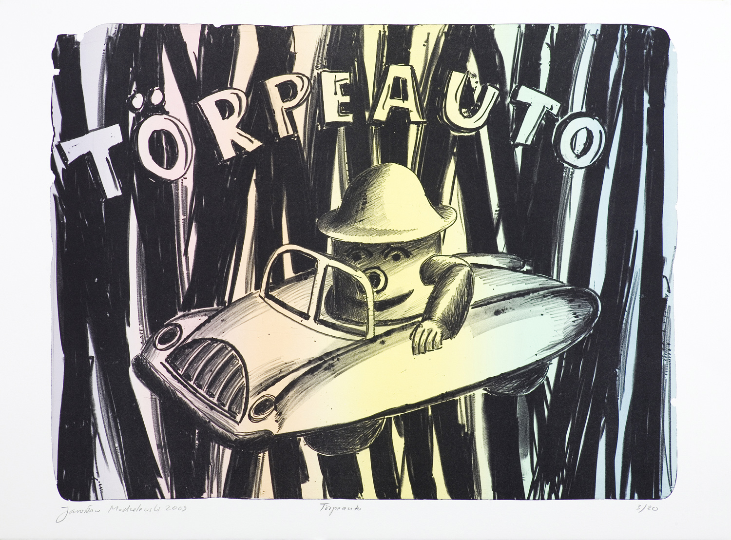 Jarosław Modzelewski (Warszawa 1955, mieszka w Warszawie) studiował malarstwo w ASP w Warszawie w latach 1975-1980, uzyskując dyplom w pracowni Stefana Gierowskiego. Od 1982 pracuje jako pedagog na macierzystym wydziale. W 1982 był współzałożycielem „Gruppy”, najważniejszego ugrupowania nurtu nowej ekspresji lat 80., działającego do 1992. W latach 1991-1996 wspólnie z Markiem Sobczykiem prowadził prywatną Szkołę Sztuki w Warszawie. Od wielu lat współpracuje z Galerią Zderzak w Krakowie. W początkowym okresie twórczości skłaniał się ku abstrakcji, wykorzystywał uproszczone znaki i emblematy oraz sylwetki odbite z szablonu. W 1985 namalował cykl oparty na ilustracjach do podręczników języka rosyjskiego, obrazujący proste czynności, których czasownikowe określenia stanowią tytuły prac. W 1986-1989 powstawały obrazy utrzymane w konwencji realistycznej, jednak zarazem o surrealnej atmosferze uzyskiwanej różnymi metodami, np. przez dublowanie figur, ukazywanie postaci w sytuacji niepewności czy zagrożenia, zabiegi z przestrzenią. W grupie obrazów z 1988 artysta rezygnuje z postaci ludzkiej na rzecz wyjątkowego nasycenia emocją samej przestrzeni pejzaży i wnętrz. Około 1990 wraca do kompozycji akcentujących czynności wykonywane przez postaci, które często umieszczone są w pustej, zaledwie zasugerowanej, acz dominującej przestrzeni. Odrealnienia i monumentalności dodaje tym obrazom płaskie i rozległe kładzenie koloru.