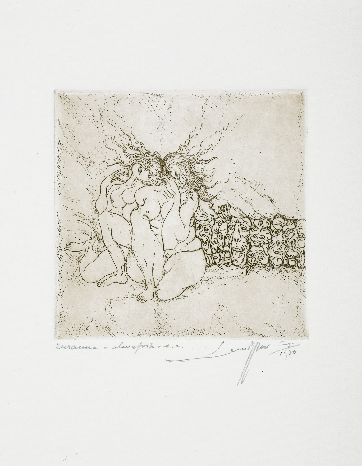 Leszek Rózga (Zgierz 1924 - Łódź 2015) - artysta grafik. W latach 1940-1945 przebywał na robotach w Niemczech, gdzie po zakończeniu wojny pracował w teatrze amatorskim i uczył się prywatnie malarstwa (1945-1947). Studiował w Państwowej Wyższej Szkole Sztuk Plastycznych w Łodzi (1948-1951) i na Wydziale Grafiki Propagandowej w Katowicach - filii ASP w Krakowie, gdzie obronił dyplom w 1954. W latach 1967-1994 był wykładowcą (od 1979 profesorem) w uczelni łódzkiej, gdzie stworzył szkołę metaforycznej, ekspresyjnej sztuki graficznej. Brał udział w licznych wystawach w kraju i za granicą, zdobywając często nagrody. Był również laureatem wielu nagród państwowych, resortowych, regionalnych itp., jak: Nagrody Ministra Kultury i Sztuki I st. 1981, 1986, 1994, Nagroda Woj. Łódzkiego 1972, Nagroda Miasta Łodzi 1985. Działał w ZPAP, był m. in. członkiem Rady Artystycznej Zarządu Głównego 1974-1976. Początkowo zajmował się głównie malarstwem, rysunkiem i monotypią, tworząc nastrojowe widoki miejskie. Od 1960 skupił się na grafice warsztatowej (głównie w technikach metalowych). W latach 70. wprowadzał do swych kompozycji werystycznie odwzorowane rośliny i owoce, inskrypcje, cytaty ze sztuki klasycznej.
