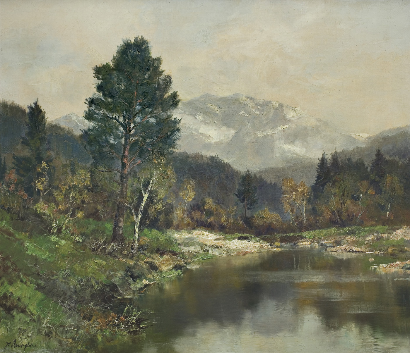 PEJZAŻ JESIENNY Z OŚNIEŻONYM SZCZYTEM