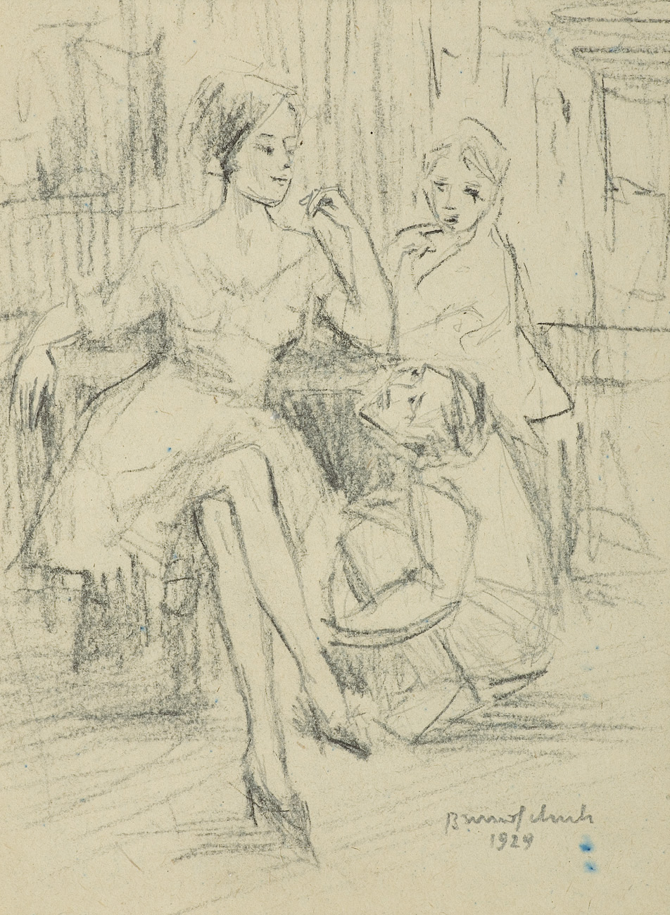 Proweniencja: według relacji obecnego właściciela, około roku 1972, rysunek został przezeń pozyskany od osób skoligaconych z Brunem Schulzem, którym artysta powierzył część swych prac.