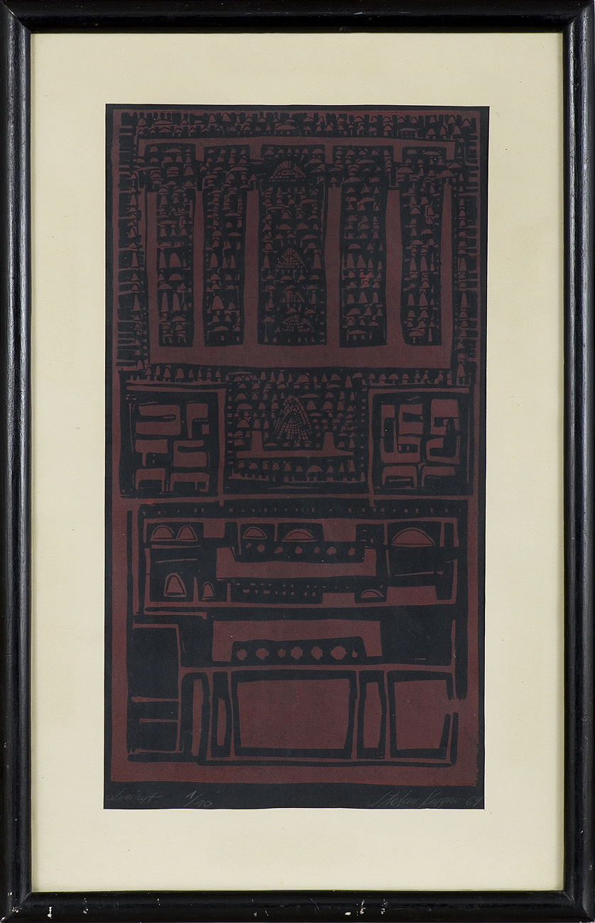 linoryt jednobarwny, papier