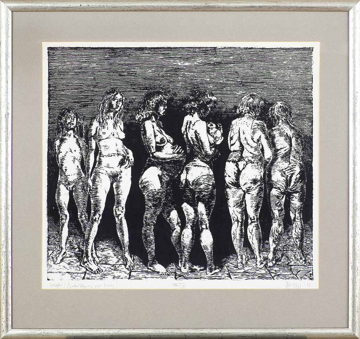 Zbylut Grzywacz (Kraków 4 VI 1939 - Kraków 16 VII 2004) studiował w latach 1957-1963 w krakowskiej ASP, uzyskując dyplom z malarstwa u Emila Krchy. Od 1972 pracował w macierzystej uczelni jako pedagog, w 1991 otrzymał tytuł profesora. Internowany w stanie wojennym, w latach 80. uczestniczył w ruchu kultury niezależnej. W 1983 otrzymał Nagrodę Kulturalną „Solidarności“ podziemnej. Od 1966 działał wraz z Maciejem Bieniaszem, Leszkiem Sobockim i Jackiem Waltosiem w grupie „Wprost“. Przyjąwszy założenie „mówienia wprost“, tj. w konwencji realistycznej i na tematy aktualne, członkowie grupy do połowy lat 80. rejestrowali rzeczywistość PRL z jej wynikającymi z systemu ustrojowego wynaturzeniami, jak powszechna bieda, zakłamanie oficjalnej propagandy, zanik więzi i uczuć między ludźmi itd. Spośród członków grupy Grzywacz reprezentował spojrzenie szczególnie wyczulone na te codzienne bolączki. Początkowo ulegał wpływom Francisa Bacona, widocznym zwłaszcza w malarskim cyklu „Orantki“ i cyklu gipsowych reliefów „Utrwalone“. Od początku lat 70. przyjął bliższe realizmowi środki obrazowania, nasilając jednocześnie interwencyjną wymowę swych prac. Układał swe prace w cykle, jak „Człowiek bez jakości“ (1972-1973), „Opuszczona“ (1973-1979), „Wołowy“ (1977-1980). W początkach stanu wojennego powstały cykle „Rekolekcje wiśnickie“ (1981-1982) i „Wiosna 1982“ (1982-1983), w których refleksje wywołane przez stan wojenny oddane zostały w formie symbolicznych martwych natur. W połowie lat 80. artysta wrócił do tematu aktu kobiecego, malując postaci, których ciała są „napiętnowane“ szramami i bliznami po operacjach, odciskami niewygodnej bielizny itp. Podsumowaniem tego cyklu jest monumentalna kompozycja Kolejka (Siedem okresów życia kobiety), będąca współczesną wersją średniowiecznego „tańca śmierci“. Po przełomie 1989 roku artysta kontynuował malowanie aktów, traktując je obecnie na sposób klasyczny - jako afirmację życia i piękna. Równolegle od lat zajmował się mineralogią, należał do Polskiego Towarzystwa Przyjaciół Nauk o Ziemi, w 1990 redagował biuletyn „Kamienie“. Wspólnie z żoną Marią prowadził Galerię Osobliwości Este w Krakowie, gdzie prezentowana była sztuka i kryształy.