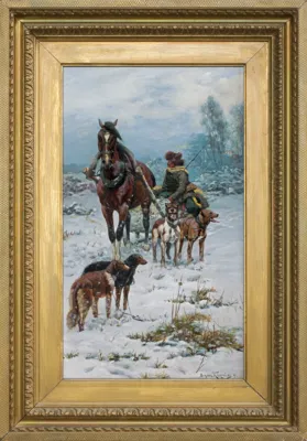 Malował - rozgrywające się przeważnie we wsiach i w stepach Ukrainy - barwne sceny rodzajowe i myśliwskie, jeźdźców, sanny, kuligi, napady wilków (Przed karczmą, U studni, Poczuły wilka, Czwórka, Na straży, Próba koni), obrazy ze stale powracającym ulubionym motywem konia, którego artysta „wystudiował jak mało kto“. Ponadto malował pejzaże. W jego twórczości, ukształtowanej w kręgu Józefa Brandta, odnaleźć można również inspiracje malarstwem Juliusza Kossaka, Alfreda Wierusza-Kowalskiego i Józefa Chełmońskiego.