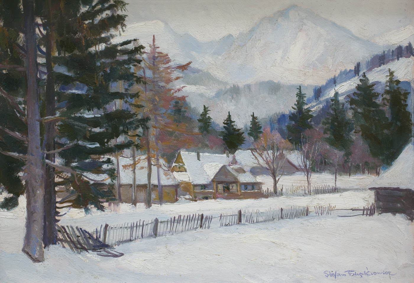 Stefan Filipkiewicz (Tarnów 1879 - obóz koncentracyjny w Mauthausen-Gusen 1944) - malarz i grafik, pejzażysta; w latach 1900-1908 studiował w krakowskiej Akademii Sztuk Pięknych u Józefa Mehoffera, Leona Wyczółkowskiego, Józefa Pankiewicza i Jana Stanisławskiego. Już w czasie studiów brał udział w wystawach krakowskiego TPSP, później uczestniczył w wielu wystawach krajowych i zagranicznych. Był przede wszystkim pejzażystą, uznawanym za jednego z najwybitniejszych uczniów Stanisławskiego i jego szkoły pejzażu. Malował krajobrazy tatrzańskie i podhalańskie, pejzaże z podkrakowskiego Radziszowa, gdzie spędzał wakacje, a w latach późniejszych także widoki nadmorskie. Malował również dekoracyjne martwe natury z bukietami kwiatów. Zajmował się grafiką, ilustracją, projektowaniem plakatów i medali. Od roku 1908 był członkiem Towarzystwa Artystów Polskich „Sztuka”. W latach 1913-1914 prowadził kurs malarstwa dekoracyjnego w Szkole Przemysłowej w Krakowie, od 1930 wykładał w ASP w Krakowie, a od 1937 był profesorem tej uczelni. Uczestnik wielu wystaw; w 1929 roku otrzymał złoty medal na Powszechnej Wystawie Krajowej w Poznaniu, w 1933 roku nagrodę Polskiej Akademii Umiejętności za całokształt twórczości. W latach 1914-1917 służył w Legionach, w czasie drugiej wojny światowej działał w konspiracji. Był Sekretarzem Komitetu Obywatelskiego do Spraw Opieki nad Uchodźcami Polskimi na Węgrzech i Placówki w Budapeszcie - przedstawicielstwa Rządu Rzeczypospolitej Polskiej na uchodźstwie. Aresztowany przez gestapo, prawdopodobnie z końcem lipca 1944 został wywieziony do obozu w Mauthausen-Gusen, gdzie 23 sierpnia zginął zamordowany wraz z współpracownikami z konspiracji - Henrykiem Sławikiem, Edmundem Fietz-Fietowiczem, Kazimierzem Gurgulem i Andrzejem Pyszem.