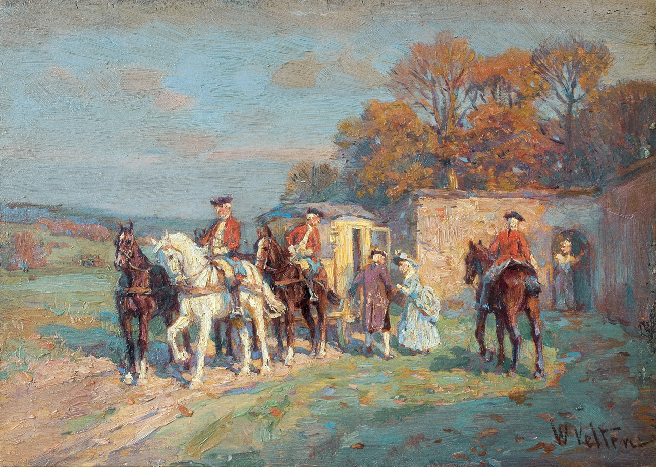Wilhelm Velten (Saint Petersburg 1847 - Monachium 1929) studia malarskie rozpoczął w latach 1867-1869 w Akademii Sztuk Pięknych w Petersburgu, a później - od 1870 - był uczniem Wilhelma von Dieza w Akademii monachijskiej. W Monachium osiadł na stałe. W latach dziewięćdziesiątych został członkiem monachijskiego stowarzyszenia Secesja. Podobnie jak jego nauczyciel Wilhelm Diez, artysta malował głównie motywy rodzajowe - polowania, jeźdźców i obozowe życie żołnierzy - osadzone w realiach siedemnastego i osiemnastego wieku.
