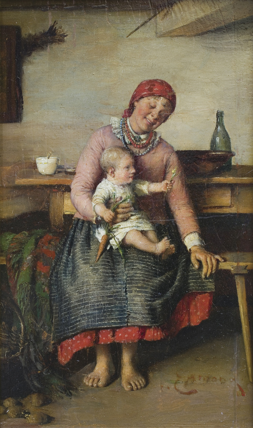Franciszek Ejsmond (Krogulcza k. Radomia 1859 - Warszawa 1931) – malarz z kręgu „polskich monachijczyków”, ojciec malarza Stanisława i poety Juliana Ejsmondów. Studia artystyczne rozpoczął w Warszawskiej Klasie Rysunkowej u Wojciecha Gersona i Aleksandra Kamińskiego. Następnie - w latach 1879-1886 - uczył się w Akademii Monachijskiej pod kierunkiem Gyuli Benczura i Alexsandra Wagnera; jego prace kilkakrotnie wyróżniano medalami, m.in. w roku 1887 otrzymał srebrny medal za Miłość macierzyńską. Letnie miesiące spędzał zazwyczaj w Polsce, przygotowując liczne studia i szkice z natury, które później wykorzystywał w obrazach malowanych już w Monachium. W 1894 wrócił do kraju i osiadł na stałe w Dąbrówce k. Grodziska. Swoją pracownię urządził na wzór wiejskiej izby ze sprzętami, narzędziami i ubiorami, służącymi mu za rekwizyty malarskie. Malował portrety, kompozycje figuralne, motywy z polowań, sceny rodzajowe (Swaty, Zaloty przy studni, Kabalarka) ale największa popularność przyniosły mu pogodne i nieco sentymentalne scenki z wiejskiego życia rodzinnego (Szczęście rodzinne, ABC - pierwsze czytanie, Pociecha rodziców, Przed kołyską). Swoje obrazy często i chętnie pokazywał na wystawach – tak w Monachium, jak i w Warszawie czy Krakowie. W 1896 uczestniczył w międzynarodowej wystawie w Berlinie, a w 1897 w wystawie w Petersburgu. Prace artysty znajdują się w zbiorach licznych muzeów polskich, m.in. w Białymstoku, Tarnowie, Warszawie, Krakowie, a także w Lwowskiej Galerii Obrazów.