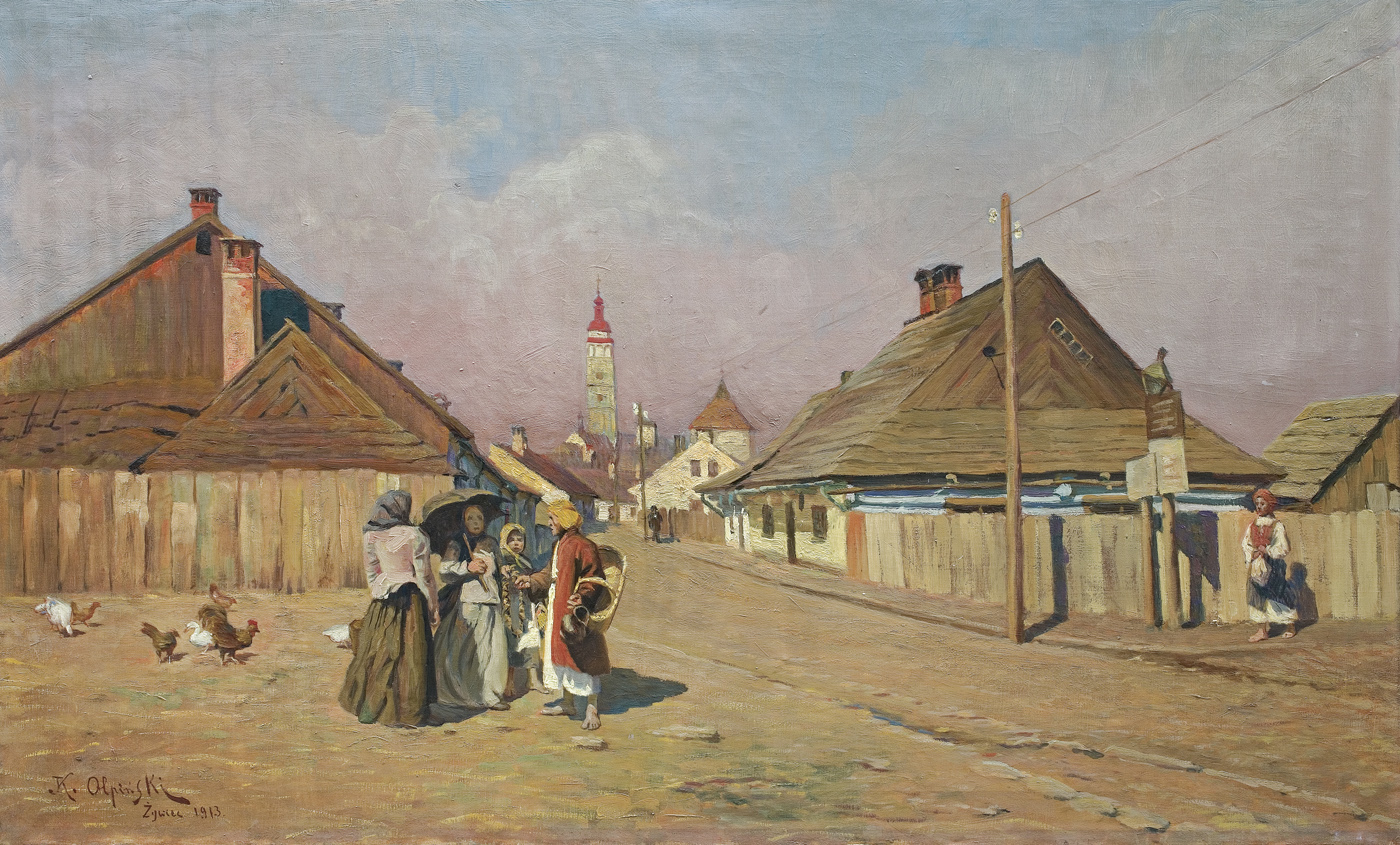 Kazimierz Olpiński w latach 1893-1897 studiował w Akademii w Monachium pod kierunkiem Karla Raupa i Karla Marra, w latach 1897-1900 w Paryżu – w Académie des Beaux-Arts u René Xaviera Prineta, Jamesa Whistlera i Rafaëla Collina oraz w Académie Colarossi, a w latach 1900-1905 w Akademii w Wiedniu u Kazimierza Pochwalskiego. Kilkakrotnie otrzymywał wyróżnienia i medale za prace studenckie, złotym medalem nagrodzono także jego Pejzaż jesienny pokazany na wystawie w Paryżu. Podróżował do Włoch (1899-1901) i Kurlandii. Po powrocie do kraju pracował jako nauczyciel rysunków w gimnazjach Krosna, Krakowa i Żywca. W 1921 zamieszkał we Lwowie, gdzie został profesorem w państwowej Szkole Przemysłowej, a od 1936 uczył rysunku na Politechnice. Malował pejzaże, sceny rodzajowe i tzw. typy ludowe, a także portrety i sceny legionowe (Przysięga legionistów na rynku żywieckim, 1915; Śmierć legionisty pod Limanową, 1920). Wystawiał we Lwowie, Krakowie, Warszawie, Żywcu, brał także udział w Powszechnej Wystawie Krajowej w Poznaniu. Prace artysty – obrazy olejne i akwarele – znajdują się w zbiorach Muzeów Narodowych w Krakowie, Warszawie, Szczecinie, Poznaniu, w zbiorach muzeów w Żywcu, Jarosławiu oraz w Galerii Obrazów we Lwowie.