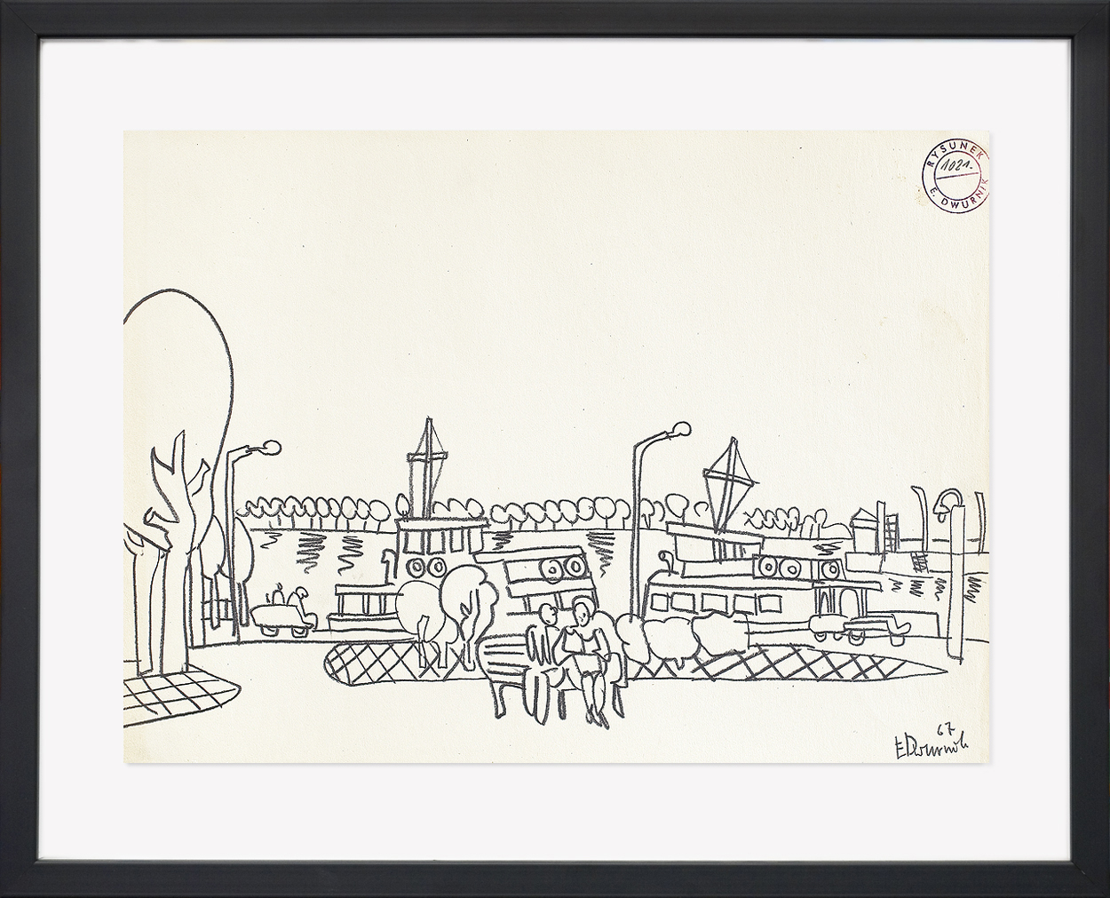 Edward Dwurnik (Radzymin 19 IV 1943 - Warszawa 28 X 2018) studiował malarstwo w ASP w Warszawie (1963-1970), jednak jako swego „mistrza“ wymienia Nikifora. Jego to prace, zobaczone po raz pierwszy w 1965, zainspirowały ówczesnego studenta III roku do narysowania pierwszych prac z cyklu „Podróże autostopem“, które kontynuował w nastepnych latach. W 1972-1978 powstawał cykl „Sportowcy“, w którym portretowane były, dodajmy - kąśliwie, typowe postaci z lat 70. Równolegle od 1975 powstawał cykl „Robotnicy“, który kulminował w okresie „Solidarności“ 1980-1981. Za prace z tego cyklu Dwurnik otrzymał w 1981 Nagrodę Krytyki Artystycznej im. Cypriana Kamila Norwida, natomiast za obrazy z cyklu „Warszawa“ (1981), proroczo zapowiadające stan wojenny - Nagrodę Kulturalną „Solidarności“ podziemnej w 1983. W latach 80. malarstwo Dwurnika przybrało wyraz ekspresyjny i dramatyczny. Powstające w tej dekadzie obrazy miały niejednokrotnie wymowę polityczną, przybierały też kostium historyczny, tak czy inaczej odnoszący się do współczesnych spraw i realiów. Cykl „Droga na Wschód“ (1989-91) upamiętniał ofiary stalinizmu, natomiast cykl „Od Grudnia do Czerwca“ (1990-94) - ofiary stanu wojennego. Zarówno ideowe, jak i czysto malarskie walory tych prac przyniosły artyście ogromne uznanie, zarówno w kraju jak i za granicą. Jego wyrazem była prestiżowa nagroda Fundacji Coutts & Co w Zurychu (1992). W latach 90. powstają cykle będące kontynuacją „Podróży autostopem“: „Niebieskie miasta“ (od 1993) i „Diagonale“ (od 1996), jak również kompozycje nowego typu, jak widoki morskie (cykl „Błękitne“, 1992-93) czy cykl „Wyliczanka“ (1996-99). Artysta wiele wystawia, miał ok. 100 wystaw indywidualnych w Polsce i za granicą, brał też udział w licznych wystawach i festiwalach krajowych i międzynarodowych, m.in.: X Biennale Sztuki Współczesnej, Menton 1974, Documenta 7, Kassel 1982, 5th Biennale, Sydney 1985, XIX Biennale Sztuki, Sao Paulo 1987; Olimpiada Sztuki, Seul 1988. Równolegle z malarstwem uprawiał rysunek, collage, grafikę warsztatową (litografia, techniki metalowe, kserografia, stemple) i użytkową (ilustracja, plakaty do własnych wystaw indywidualnych).