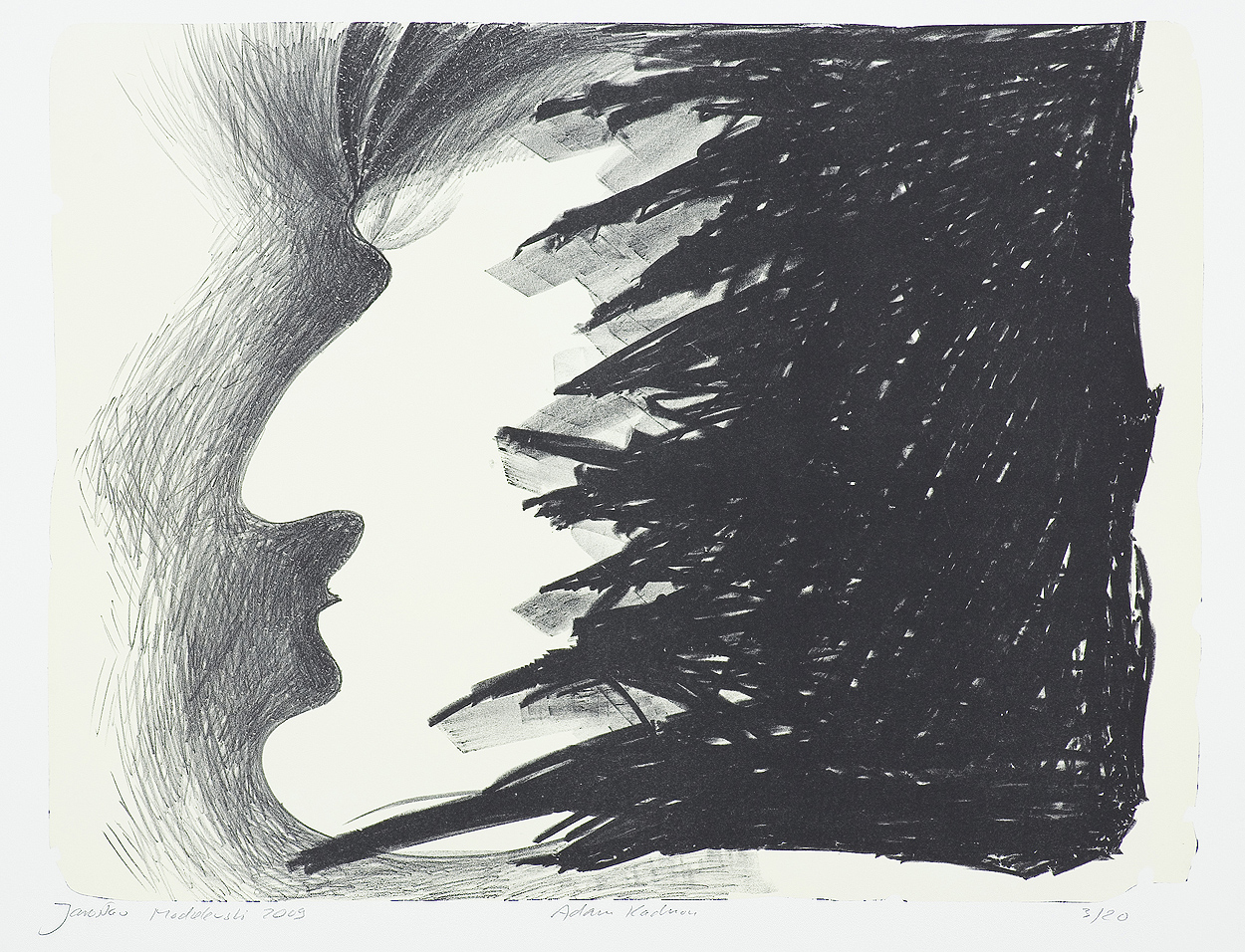 Jarosław Modzelewski (Warszawa 1955, mieszka w Warszawie) studiował malarstwo w ASP w Warszawie w latach 1975-1980, uzyskując dyplom w pracowni Stefana Gierowskiego. Od 1982 pracuje jako pedagog na macierzystym wydziale. W 1982 był współzałożycielem „Gruppy”, najważniejszego ugrupowania nurtu nowej ekspresji lat 80., działającego do 1992. W latach 1991-1996 wspólnie z Markiem Sobczykiem prowadził prywatną Szkołę Sztuki w Warszawie. Od wielu lat współpracuje z Galerią Zderzak w Krakowie. W początkowym okresie twórczości skłaniał się ku abstrakcji, wykorzystywał uproszczone znaki i emblematy oraz sylwetki odbite z szablonu. W 1985 namalował cykl oparty na ilustracjach do podręczników języka rosyjskiego, obrazujący proste czynności, których czasownikowe określenia stanowią tytuły prac. W 1986-1989 powstawały obrazy utrzymane w konwencji realistycznej, jednak zarazem o surrealnej atmosferze uzyskiwanej różnymi metodami, np. przez dublowanie figur, ukazywanie postaci w sytuacji niepewności czy zagrożenia, zabiegi z przestrzenią. W grupie obrazów z 1988 artysta rezygnuje z postaci ludzkiej na rzecz wyjątkowego nasycenia emocją samej przestrzeni pejzaży i wnętrz. Około 1990 wraca do kompozycji akcentujących czynności wykonywane przez postaci, które często umieszczone są w pustej, zaledwie zasugerowanej, acz dominującej przestrzeni. Odrealnienia i monumentalności dodaje tym obrazom płaskie i rozległe kładzenie koloru.