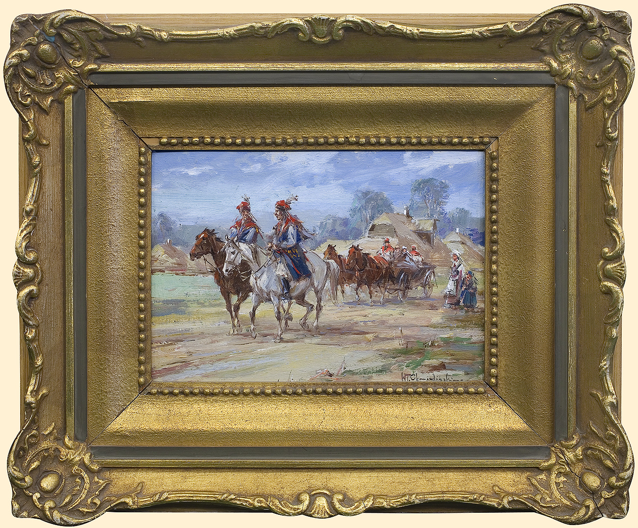 Władysław Chmieliński (Warszawa 1911 - Warszawa 1979) był malarzem związanym z Warszawą, gdzie stale mieszkał i pracował. W latach 1926-1931 studiował w warszawskiej Miejskiej Szkole Sztuk Zdobniczych i Malarstwa (dawna Klasa Rysunkowa). Wiodącym tematem jego obrazów były widoki miejskie, malowane olejno i akwarelą. W latach 1935-1938 stworzył cykl akwarel przedstawiających obiekty polskiej architektury; wśród nich, widoki Sandomierza, Krakowa, Kazimierza nad Wisłą, a także wnętrza zabytkowych kościołów czy pałaców, m.in. Zamku Królewskiego w Warszawie i Pałacu w Wilanowie. Malował także pejzaże i wiejskie sceny rodzajowe – kuligi, sanny, zaprzęgi, wesela, konie na tle krajobrazu. W latach 1967-1969 wyjeżdżał na dłuższe pobyty do Danii. W latach 1936-1939 artysta używał także pseudonimu „Władysław Stachowicz”.