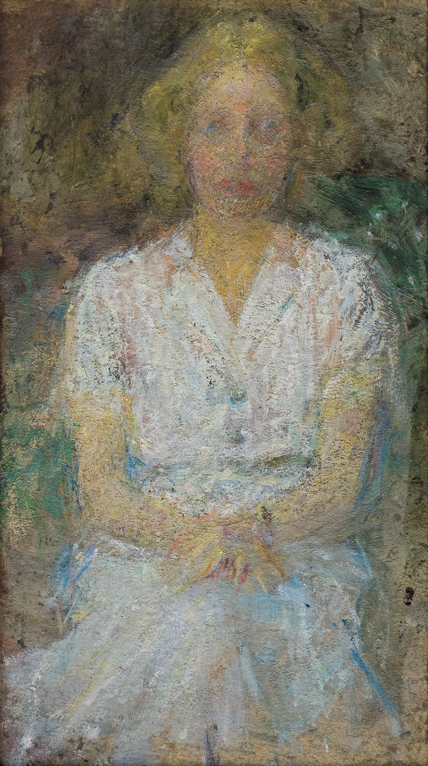 Olga Boznańska (Kraków 1865 - Paryż 1940) – wybitna malarka polska – kształciła się w Krakowie, początkowo pod kierunkiem matki, nauczycielki rysunków Eugenii Mondan, później u J. Siedleckiego, H. Lipińskiego, K. Pochwalskiego. W latach 1884-1886 uczęszczała także na Wyższe Kursy Artystyczne dla Kobiet przy Muzeum Techniczno-Przemysłowym. W 1886 wyjechała do Monachium gdzie uczyła się pod kierunkiem Karla Kricherdorfa i Wilhelma Dürra. Od 1889 pracowała samodzielnie i miała w Monachium własną pracownię. Od 1895 nauczała w prywatnej szkole malarstwa Theodora Humla. Z Monachium wielokrotnie jeździła do kraju, a także do Francji i Szwajcarii. W 1898 przeniosła się na stałe do Paryża, gdzie – przez lata – była jedną z czołowych postaci polskiej kolonii artystycznej. Debiutowała w roku 1886 na wystawie w krakowskim Towarzystwie Przyjaciół Sztuk Pięknych i odtąd stale uczestniczyła w wystawach krajowych i zagranicznych, zdobywając medale i wyróżnienia. W roku 1910 otrzymała francuską Legię Honorową, w roku 1938 order Polonia Restituta. Należała do wielu znaczących – polskich i europejskich – stowarzyszeń artystycznych. Główną domeną jej twórczości był portret – we wcześniejszym, monachijskim okresie często cało postaciowy, monumentalny i zwarty w formie; w czasach paryskich bardziej kameralny, nastrojowy, o zróżnicowanych walorowo plamach barwnych podporządkowanych dominacji jednego tonu, gubiących kontury i zacierających ostrość planów. Malowała też martwe natury i – rzadziej – pejzaże miejskie czy kompozycje rodzajowe.