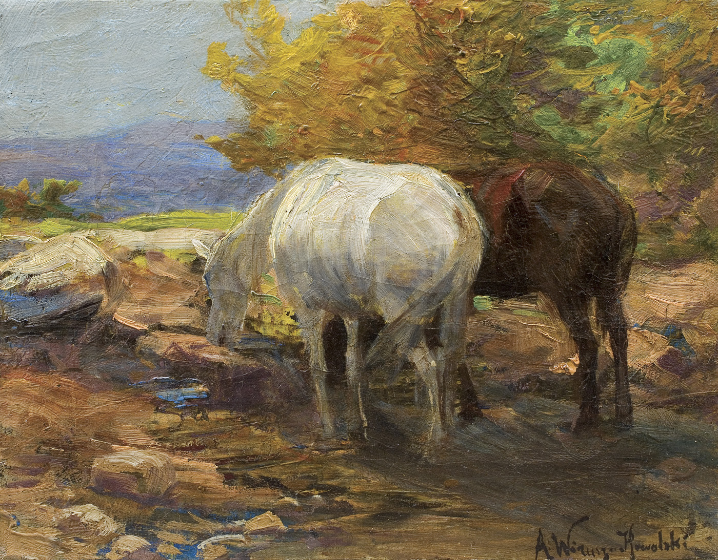 Alfred Wierusz-Kowalski (Suwałki 1849 – Monachium 1915) - jeden z najwybitniejszych polskich malarzy tzw. szkoły monachijskiej był, obok Józefa Brandta i Władysława Czachórskiego, także najpopularniejszym z polskich artystów osiadłych i stale działających w Monachium. Zamieszkał tam w roku 1873, już po studiach w Warszawie i w Dreźnie. Przez rok uczył się jeszcze w monachijskiej Akademii Sztuk Pięknych pod kierunkiem Alexandra Wagnera, a następnie przeniósł się do prywatnej pracowni Brandta. Uznanie krytyki i publiczności zdobył wcześnie; jego obrazy, odznaczane medalami na wystawach były rozchwytywane przez kolekcjonerów i niemieckich handlarzy. W roku 1890 został honorowym profesorem Akademii monachijskiej. Malował sceny rodzajowe i rodzajowo-historyczne z motywami jeźdźców, rycerzy, myśliwych, koni, wilków i śniegów. Po podróży do Afryki w roku 1903 podejmował też tematy orientalne. W polskich zbiorach muzealnych znalazło się stosunkowo niewiele prac artysty – jego obrazy sprzedawane głównie na rynku niemieckim w większej liczbie trafiały do kolekcji prywatnych, głównie w Niemczech i Stanach Zjednoczonych. Obecne często pojawiają się i na polskim rynku sztuki, zawsze budząc zainteresowanie kolekcjonerów.
