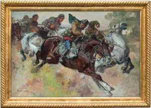 Stanisław Kaczor-Batowski (Lwów 1866 - Lwów 1946) - studia artystyczne rozpoczął w krakowskiej Szkole Sztuk Pięknych pod kierunkiem Władysława Łuszczkiewicza i Floriana Cynka. Później kształcił się w Akademii w Wiedniu, a w l. 1887-1889 także w Akademii w Monachium pod kierunkiem A.Liezen-Mayera. Podróżował do Włoch, Hiszpanii, Maroka i na Krym; był także w Stanach Zjednoczonych. Stale mieszkał we Lwowie, gdzie w latach 1903-1914 prowadził własną szkołę malarstwa. Był współzałożycielem lwowskiego Stowarzyszenia Artystów „Młoda Polska”. Znany jest przede wszystkim jako batalista, twórca takich płócien, jak Atak husarii pod Chocimiem (Muzeum Wojska Polskiego w Warszawie), Pułaski pod Savannach, Bitwa pod Zadwórzem(Muzeum Wojska Polskiego w Warszawie). Malował także pejzaże, portrety i obrazy religijne. Zajmował się także ilustratorstwem, m.in. wykonał cykle kartonów i ilustracji do utworów J. Słowackiego, powieści H. Sienkiewicza i E. Orzeszkowej. Projektował witraże (np. do katedry łacińskiej we Lwowie), zajmował się malarstwem ściennym, współpracując m.in. przy dekoracji lwowskiego teatru.
