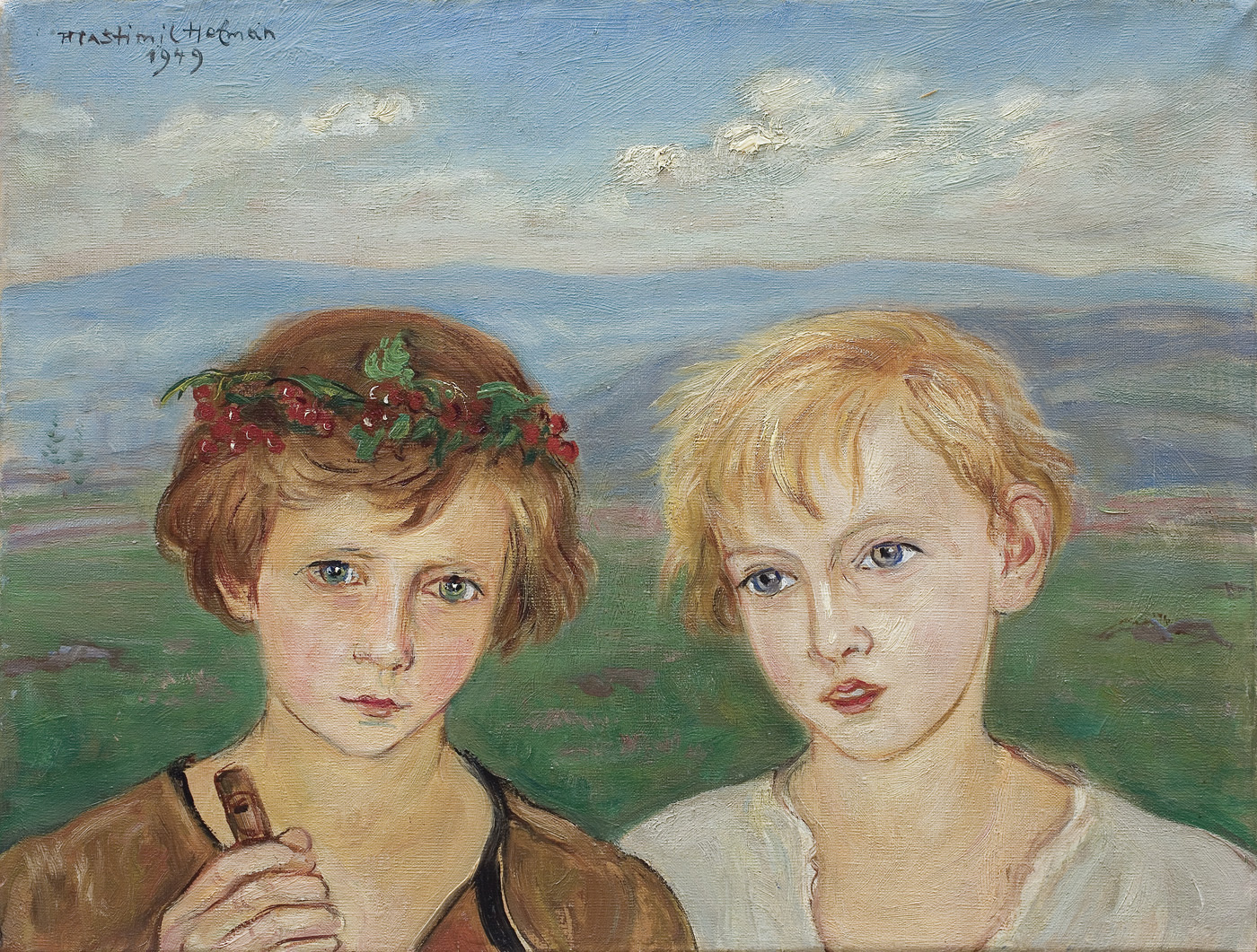 Wlastimil Hofman / Vlastimil Hofmann (Praga 1881 - Szklarska Poręba 1970) studiował w krakowskiej Szkole Sztuk Pięknych - początkowo pod kierunkiem Floriana Cynka, później także u Jana Stanisławskiego, Leona Wyczółkowskiego i Jacka Malczewskiego. W latach 1899-1902 uczył się jeszcze u Jeana Léona Gérôme’a w paryskiej École des Beaux-Arts. W czasie I wojny światowej przebywał w Pradze i w Paryżu; od 1920 stale mieszkał w Krakowie. Dużo wystawiał; należał do wielu stowarzyszeń twórczych - był współzałożycielem „Grupy Pięciu” (1905) i „Grupy Zero” (1908), członkiem Związku Artystów Czeskich „Manes”, a od 1911 członkiem Tow. Artystów Polskich „Sztuka”. W czasie II wojny światowej poprzez ZSRR i Turcję przedostał się do Jerozolimy, skąd w roku 1946 wrócił do Krakowa. Od roku 1947 stale mieszkał w Szklarskiej Porębie. Hofman malował przede wszystkim fantastyczno-symboliczne kompozycje o motywach ludowych oraz sceny rodzajowe, portrety i pejzaże. Jego obrazy mimo bliskich analogii i powiązań ze sztuką Malczewskiego odznaczają się zawsze indywidualnym charakterem, stylem i nastrojem.