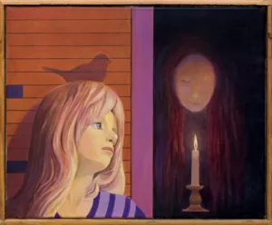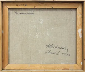 Kazimierz Mikulski (Kraków 1918 - Kraków 1998) rozpoczął studia malarskie przed II wojną światową w ASP w Krakowie, kontynuował je w latach 1939-1940 pod kierunkiem prof. Fryderyka Pautscha w Kunstgewerbeschule, powstałej za okupacji w miejsce Akademii. Po wojnie ukończył dwuletnie studia aktorskie w Studio Dramatycznym przy Starym Teatrze w Krakowie i do 1948 pracował jako aktor. Jednocześnie w 1945 ukończył Warsztat Filmowy Młodych. W latach 1948-1979 był kierownikiem plastycznym i scenografem Teatru Groteska w Krakowie, dla którego projektował lalki, kostiumy, dekoracje itp. Równolegle cały czas zajmował się malarstwem i działalnością w kręgu Tadeusza Kantora, zrazu jako członek Gru-py Młodych Plastyków, a od 1957 w Grupie Krakowskiej, której był współzałożycielem i prezesem w latach 1965-1967. Był też członkiem zespołu teatru Cricot 2, grał m.in. w spektaklach Kurka wodna, Nadobnisie i koczkodany, Umarła klasa oraz we własnej sztuce Cyrk. W swych obrazach z drugiej poł. lat 40. artysta przedstawiał lekkie, linearne formy unoszące się w pustych przestrzeniach. Było to malarstwo zarazem surrealistyczne i abstrakcyjne. Lecz już ok. 1950 zaczął malować w charaktery-styczny dlań sposób - odrzucając abstrakcję, prezentował niezliczone warianty i układy kilku ulubionych motywów (głowa lub postać kobiety-lalki, koty, motyle).