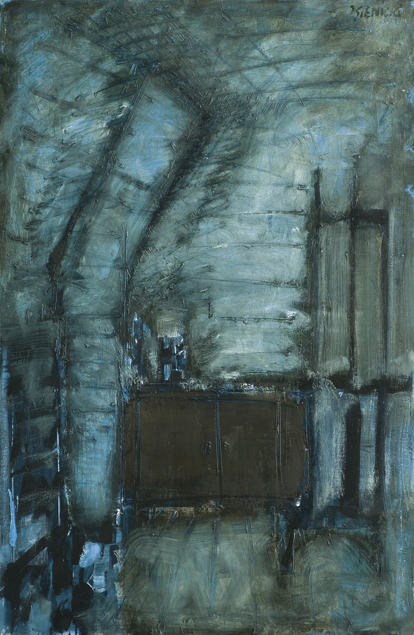 Jacek Sienicki (Warszawa 29 II 1928 - Warszawa 14 XII 2000) studiował na Wydziale Malarstwa ASP w Warszawie, gdzie w 1954 uzyskał dyplom w pracowni prof. Artura Nachta-Samborskiego. W 1955 był uczestnikiem Wystawy Młodej Plastyki w warszawskim Arsenale. Udział w tej manifestacji był nie tylko właściwym debiutem artysty, ale też na lata określił jego postawę, dzieloną z innymi „arsenałowcami“, której zasady to: prymat etyki, sceptycyzm wobec przemijających mód artystycznych, wierność sobie. W 1955 Sienicki podjął pracę pedagogiczną w macierzystej uczelni. Przeszedł wszystkie szczeble akademickie, otrzymując tytuł profesora w 1981. Był laureatem liczących się nagród, m.in. Nagrody Krytyki im. Cypriana Kamila Norwida w 1974, Nagrody im. Jana Cybisa (niezależnej) w 1984, nagrody Fundacji im. Alfreda Jurzykowskiego w 1993. Jego malarstwo od wczesnych lat oscylowało między figuratywizmem o często dramatycznej wymowie egzystencjalnej i skłonnością do abstrakcji. Przy tym malarz nie opuszczał dość ograniczonego zestawu ulubionych motywów, do których należały: czaszki końskie, wydłużone postaci, ciemne wnętrza, które rozgrywał w podobnej, ciemno-zimnej gamie barwnej. Równolegle do malarstwa wiele rysował, zazwyczaj węglem, traktując prace w tej technice jako autonomiczne dzieła.