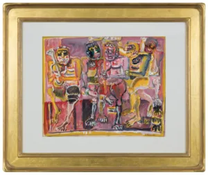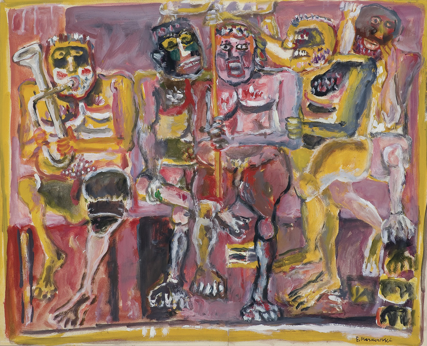 Eugeniusz Markowski (Warszawa 8 XI 1912 - Warszawa 24 II 2007) studiował w warszawskiej ASP, dyplom u prof. Tadeusza Pruszkowskiego uzyskał w 1939. Brał udział w kampanii wrześniowej i obronie Warszawy. W latach 1940-1950 przebywał we Włoszech, gdzie związał się z grupą Libera Associazione Arti Figurative i z Art Club w Rzymie. Zajmował się też projektowaniem scenografii dla rzymskiego Teatro delle Arti. Był dziennikarzem i dyplomatą we Włoszech i Kanadzie (1945-1955). Po powrocie do kraju był dyrektorem Biura Współpracy Kulturalnej z Zagranicą Ministerstwa Kultury i Sztuki (1960-1969), następnie wykładowcą i profesorem ASP w Warszawie (1969-1984). Współ-pracował jako scenograf z Operą Gdańską i teatrami warszawskimi. W 1963 reprezentował Polskę na Biennale w Sao Paulo, miał kilka wystaw indywidualnych. Jego ekspresyjny styl malowania, bezpośredniość i pewna rubaszność figuratywnych przedstawień walk i zmagań spowodowały, że w latach 80. uznano go za prekursora „nowodzikich".
