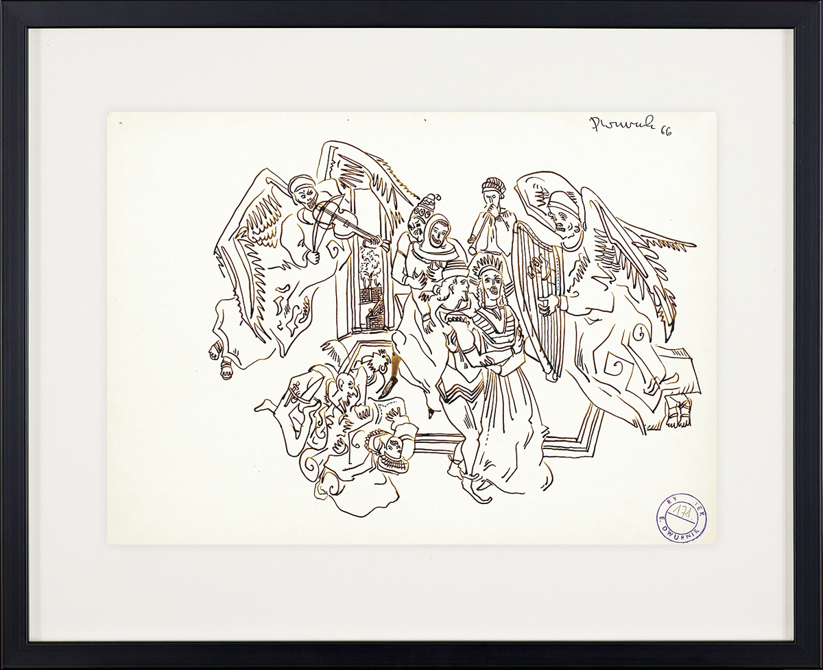 Edward Dwurnik (Radzymin 19 IV 1943 - Warszawa 28 X 2018) studiował malarstwo w ASP w Warszawie (1963-1970), jednak jako swego „mistrza“ wymienia Nikifora. Jego to prace, zobaczone po raz pierwszy w 1965, zainspirowały ówczesnego studenta III roku do narysowania pierwszych prac z cyklu „Podróże autostopem“, które kontynuował w nastepnych latach. W 1972-1978 powstawał cykl „Sportowcy“, w którym portretowane były, dodajmy - kąśliwie, typowe postaci z lat 70. Równolegle od 1975 powstawał cykl „Robotnicy“, który kulminował w okresie „Solidarności“ 1980-1981. Za prace z tego cyklu Dwurnik otrzymał w 1981 Nagrodę Krytyki Artystycznej im. Cypriana Kamila Norwida, natomiast za obrazy z cyklu „Warszawa“ (1981), proroczo zapowiadające stan wojenny - Nagrodę Kulturalną „Solidarności“ podziemnej w 1983. W latach 80. malarstwo Dwurnika przybrało wyraz ekspresyjny i dramatyczny. Powstające w tej dekadzie obrazy miały niejednokrotnie wymowę polityczną, przybierały też kostium historyczny, tak czy inaczej odnoszący się do współczesnych spraw i realiów. Cykl „Droga na Wschód“ (1989-91) upamiętniał ofiary stalinizmu, natomiast cykl „Od Grudnia do Czerwca“ (1990-94) - ofiary stanu wojennego. Zarówno ideowe, jak i czysto malarskie walory tych prac przyniosły artyście ogromne uznanie, zarówno w kraju jak i za granicą. Jego wyrazem była prestiżowa nagroda Fundacji Coutts & Co w Zurychu (1992). W latach 90. powstają cykle będące kontynuacją „Podróży autostopem“: „Niebieskie miasta“ (od 1993) i „Diagonale“ (od 1996), jak również kompozycje nowego typu, jak widoki morskie (cykl „Błękitne“, 1992-93) czy cykl „Wyliczanka“ (1996-99). Artysta wiele wystawia, miał ok. 100 wystaw indywidualnych w Polsce i za granicą, brał też udział w licznych wystawach i festiwalach krajowych i międzynarodowych, m.in.: X Biennale Sztuki Współczesnej, Menton 1974, Documenta 7, Kassel 1982, 5th Biennale, Sydney 1985, XIX Biennale Sztuki, Sao Paulo 1987; Olimpiada Sztuki, Seul 1988. Równolegle z malarstwem uprawiał rysunek, collage, grafikę warsztatową (litografia, techniki metalowe, kserografia, stemple) i użytkową (ilustracja, plakaty do własnych wystaw indywidualnych).