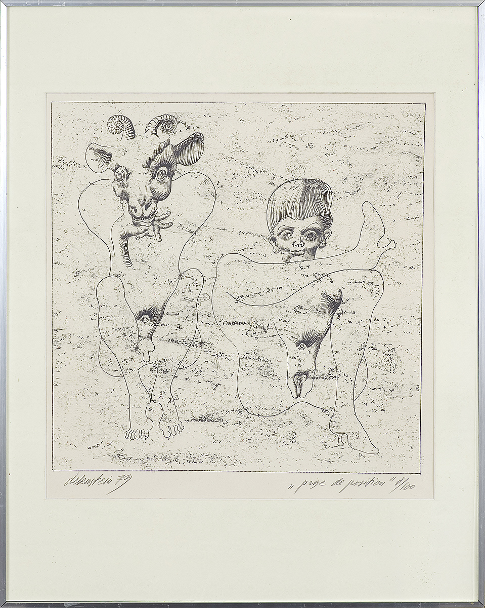 Jan Lebenstein (Brześć Litewski 1930 - Kraków 1999) w latach 1948-1954 studiował malarstwo w ASP w Warszawie pod kierunkiem prof. Eugeniusza Eibischa i Artura Nachta-Samborskiego. W 1955 wziął udział w wystawie w warszawskim Arsenale. Zaprzyjaźniony w czasie studiów z Mironem Białoszewskim, swą pierwszą wystawę indywidualną pokazał w 1956 w Teatrze na Tarczyńskiej. W 1959 zdobył Grand Prix de la Ville de Paris na I Biennale Młodych w Paryżu i w tym roku przeniósł się na stałe do Paryża. Po seriach "figur kreślonych" (na papierze milimetrowym) i "figur hieratycznych" z lat 1955-1958 maluje cykl "figur osiowych" (1958-1962), które wystawia w Paryżu i USA. Równolegle w 1960 zaczyna rysowane "karnety", rodzaj dziennika, który w przyszłości dostarczy motywów wykorzystanych w obrazach. W latach 1964-1965 maluje "Bestiarium", cykl fakturowych, archaizowanych stworów przypominających prehistoryczne wykopaliska. Bezpośrednio po nich wprowadza do swych obrazów postaci ludzkie i fantastyczne, odgrywające sceny ni to mitologiczne, ni to ze snu, często przesycone erotyką. W 1970 projektuje witraże dla Centre du Dialogue w Paryżu. W W 1971 otrzymuje obywatelstwo francuskie 1974 powstają gwasze inspirowane Folwarkiem zwierzęcym George'a Orwella. W latach 1976-1989 tworzy wyłącznie w technice gwaszu i pastelu, podejmując tematykę mitologiczną i zaczerpniętą z Biblii: cykle ilustracji do Księgi Hioba (wyd. 1979) i do Apokalipsy (wyd. 1986) w nowych przekładach Czesława Miłosza. W 1989 powraca do malarstwa olejnego (cykl "Pergamon"). Artysta otrzymał m. in. nagrodę Fundacji im. Alfreda Jurzykowskiego w 1976, Nagrodę Muzeum Archidiecezji Warszawskiej w 1985, Nagrodę im. Jana Cybisa w 1987.