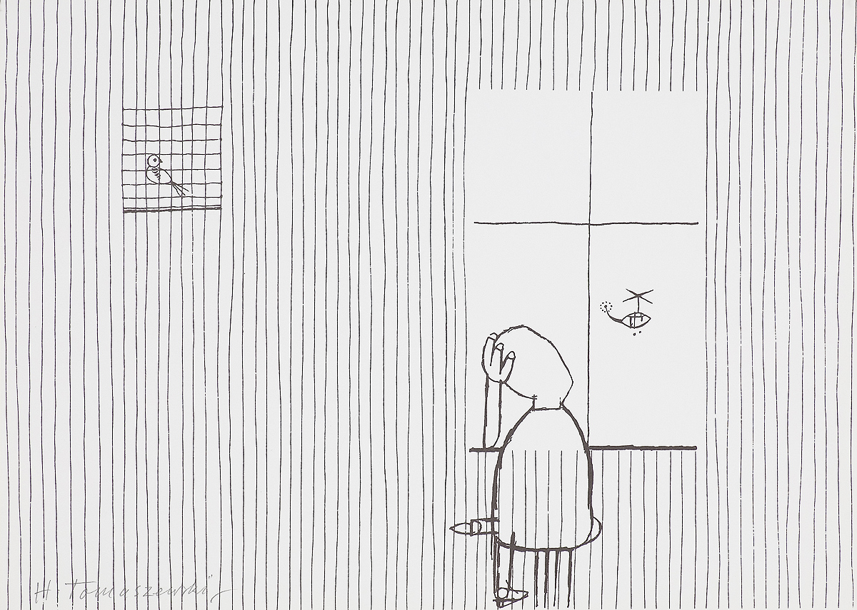 Henryk Tomaszewski (Warszawa1914-Warszawa 2005) ukończył ASP w Warszawie w 1931. Główny okres jego twórczości przypada na lata powojenne, kiedy to stał się jednym z głównych przedstawicieli fenomenu tzw. polskiej szkoły plakatu. Tomaszewski położył tu zasługi podwójnie - jako twórca i jako pedagog, pod którego opieką kształcili się młodsi plakaciści i graficy użytkowi tego nurtu. Indywidualny styl plakatów Tomaszewskiego, trudny do zdefiniowania, choć wyraziście odróżniający jego prace od innych, bazuje na trafnej metaforze, podanej lekkim, pełnym finezji i humoru rysunkiem oraz szczególnie starannie i adekwatnie do tematu opracowanym liternictwem. Twórczość plakatowa przyniosła artyście wiele nagród, poczynając od pięciu złotych medali zdobytych na Międzynarodowej Wystawie Plakatu w Wiedniu (1948), poprzez I nagrodę na VIII Biennale Sztuki w Sao Paulo (1963), I nagrodę na Międzynarodowej Wystawie Plakatu w Fort Collins, USA (1981), po złoty i srebrny medal na XII Międzynarodowym Biennale Plakatu w Warszawie (1988). Artysta otrzymał również nagrodę Fundacji Alfreda Jurzykowskiego (1984). Równolegle z plakatem tworzy rysunki, ilustracje, okładki książkowe itp., zawierając w nich (zwłaszcza w rysunkach) ogromny ładunek wyrafinowanego humoru i intelektualnej zabawy, gry słów i skojarzeń.