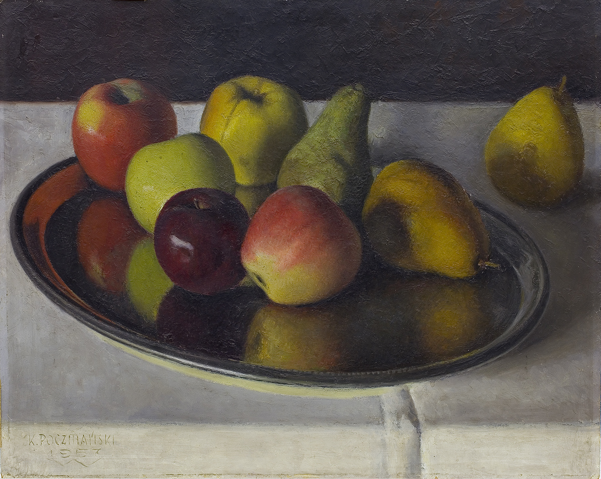 Kazimierz Poczmański - w latach 1922-1931 studiował w Akademii Sztuk Pięknych w Warszawie, był uczniem Tadeusza Pruszkowskiego. W 1936-1939 należał do Warszawskiego Towarzystwa Artystycznego. Wystawiać zaczął w latach trzydziestych, zyskując opinię znakomitego portrecisty. W 1937 na Salonie TZSP jego obraz wyróżniono brązowym medalem. Lata okupacji niemieckiej spędził w Warszawie; w powstaniu warszawskim utracił wszystkie obrazy zgromadzone w pracowni. Przeszedł przez obóz w Pruszkowie. Po wojnie przez krótki czas mieszkał w Gdyni, wkrótce jednak przeniósł się z powrotem do Warszawy i aktywnie włączył się w nurt życia artystycznego. Od 1956 był członkiem, a od 1964 prezesem Grupy „Zachęta”, uczestniczył w licznych wystawach w kraju i za granicą, jeździł na rozliczne plenery, m.in. do ulubionego Kazimierza czy też w góry. W 1960 miał w Warszawie wystawę indywidualną Był malarzem realistą. Tworzył portrety, pejzaże i – stonowane, odznaczające się subtelną kolorystyką – martwe natury.