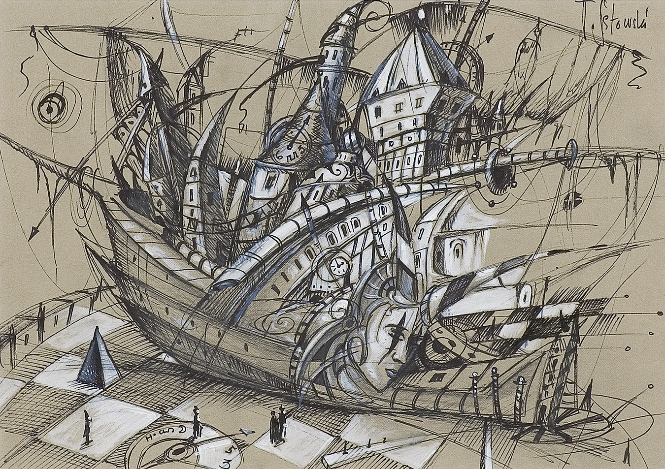 flamaster, tusz pióro, akwarela, papier