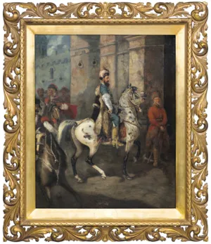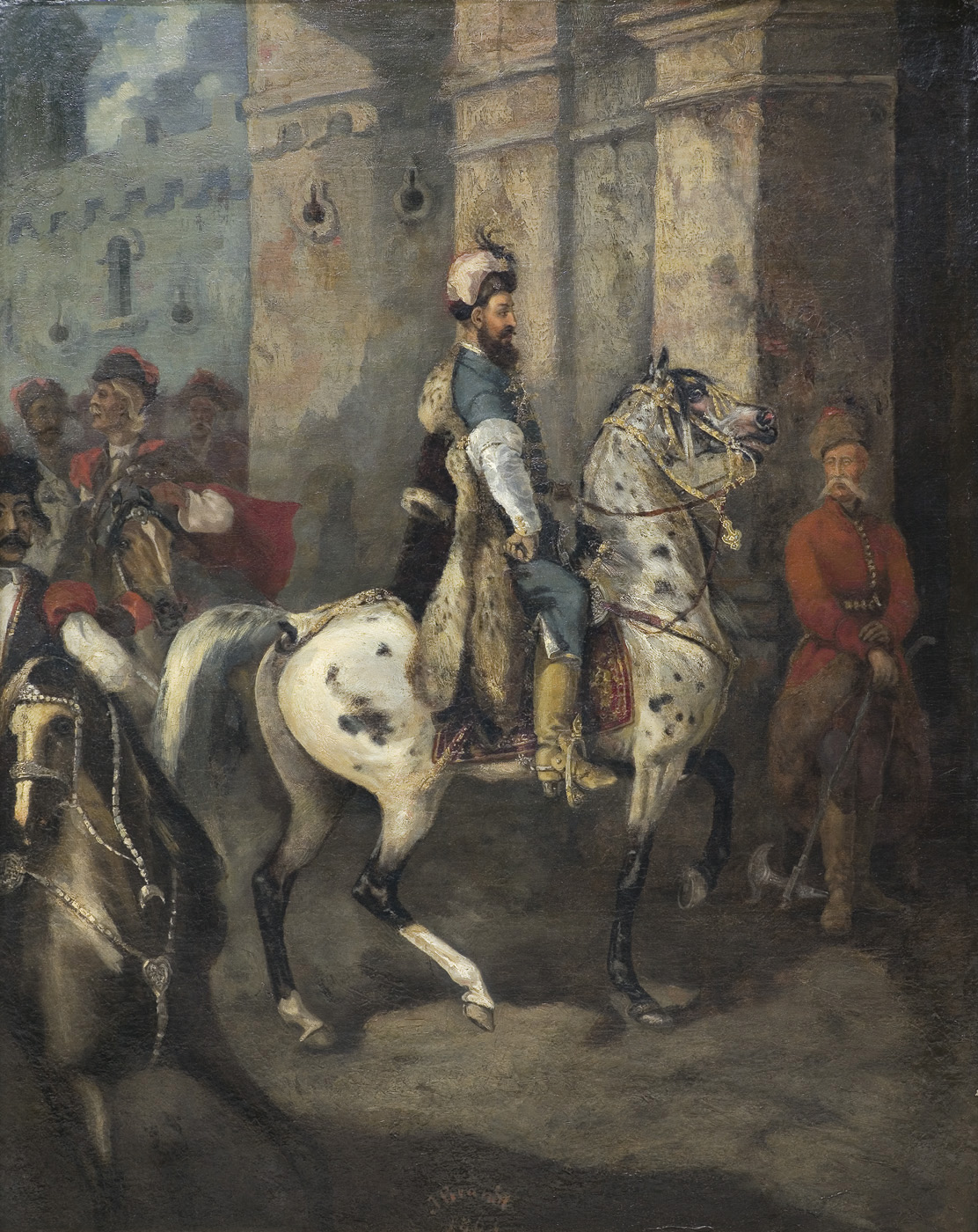 Józef Brandt (Szczebrzeszyn 1841 - Radom 1915) był jednym z najwybitniejszym polskich malarzy batalistów. Naukę malarstwa rozpoczął w Warszawie pod okiem Juliusza Kossaka. W latach 1858-1860 był w Paryżu, gdzie podjął studia inżynierskie. Niebawem zarzucił je jednak na rzecz malarstwa i kształcił się w pracowni Leona Cognieta. Po powrocie do kraju, w 1861 debiutował na wystawie w warszawskim TZSP. Od 1863 kontynuował studia w monachijskiej ASP u Franza Adama. W 1870 otworzył w Monachium własną pracownie i niebawem stał się przywódcą, „generałem” tamtejszej polskiej kolonii artystycznej i nauczycielem wielu malarzy. Po 1877 miesiące letnie spędzał w Orońsku, zapraszając na plenery grono swych uczniów. Został honorowym profesorem Akademii w Monachium (1878), członkiem Akademii w Berlinie (1877) i Pradze (1900). Odznaczony wysokimi orderami, wyróżniany medalami i nagrodami na międzynarodowych wystawach, cieszył się prawdziwie europejską sławą. Mieszkając i tworząc poza krajem zawsze wyraźnie podkreślał swoją polskość; dając jej wyraz choćby poprzez podpisywanie obrazów Józef Brandt z Warszawy. Malował bitwy, potyczki, podjazdy – epizody z historii polskich wojen kresowych i wojen szwedzkich XVII wieku, a także sceny rodzajowe – jeźdźców, polowania, jarmarki. Jego barwne, pełne ruchu i perfekcyjne warsztatowo obrazy podziwiano powszechnie, jako najlepszy przykład wysoko wówczas cenionej „szkoły polskiej”. Ale podczas gdy niemiecki czy francuski widz dostrzegał w nich przede wszystkim egzotykę i barwy Orientu, dla Polaków były to płótna „prawdziwe, naturalne, swojskie jak fragmenty z pamiętników Paska albo Rzewuskiego, przetransponowane na barwy i linie”. |
