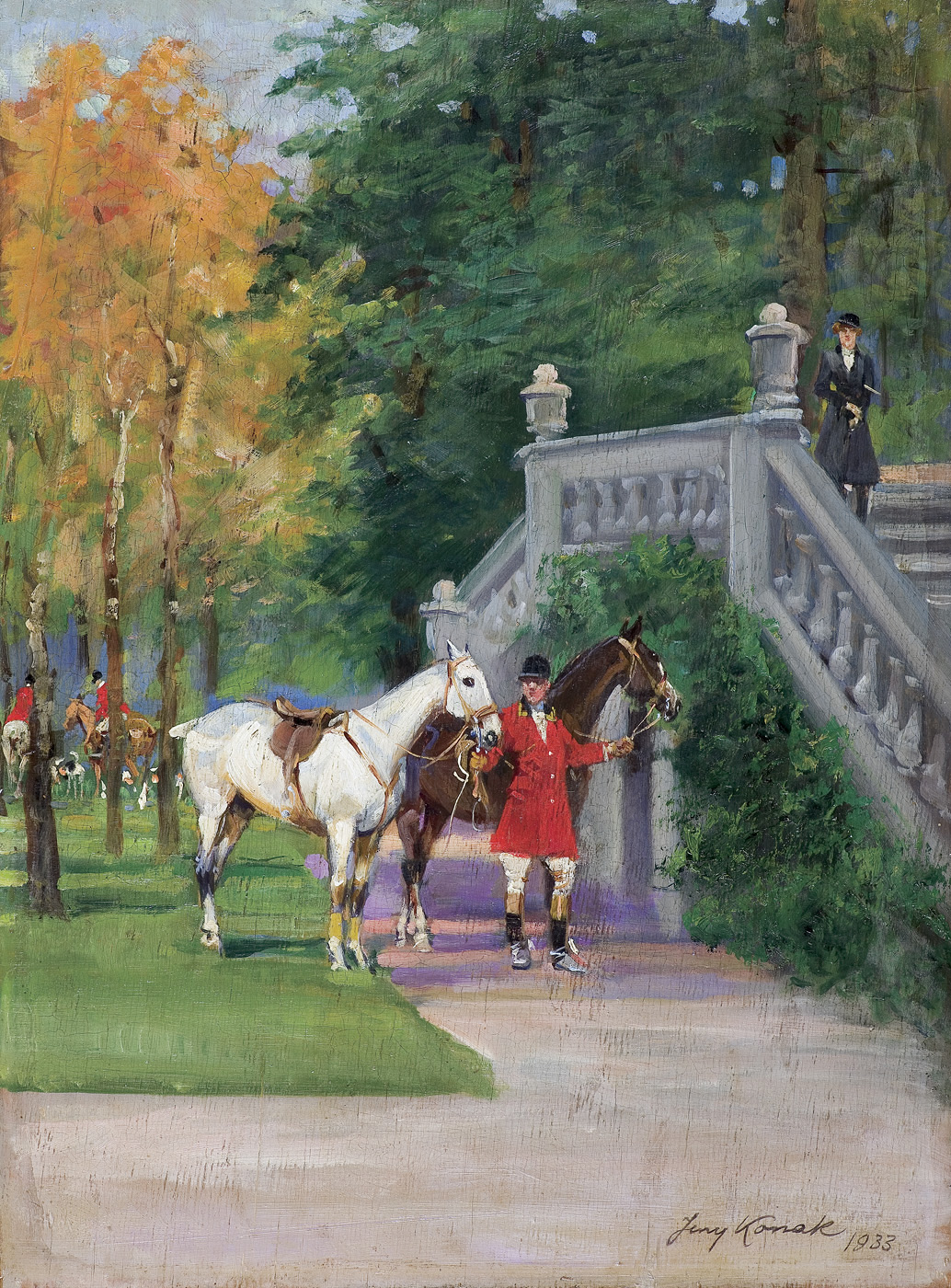 Jerzy Kossak (Kraków 1886 - Kraków 1955)- syn Wojciecha, wnuk Juliusza Kossaków - od wczesnego dzieciństwa malował pod kierunkiem ojca i dziadka. Kontynuator i naśladowca ich sztuki tworzył sceny batalistyczne, historyczne i rodzajowe z wszechobecnym motywem konia. Malował obrazy z powstania listopadowego, wojen napoleońskich oraz wiele scen z wojny 1920 roku. Najbardziej znaną jego kompozycją tego rodzaju był Cud nad Wisłą. Malował też liczne Pogonie i Pościgi ułanów za kozakami, Napady wilków, Polowania i Wesela. Tematyka tych prac sprawia, że stale cieszą się zainteresowaniem zbieraczy i publiczności, zawsze tłumnie odwiedzającej wystawy malarstwa Kossaków.