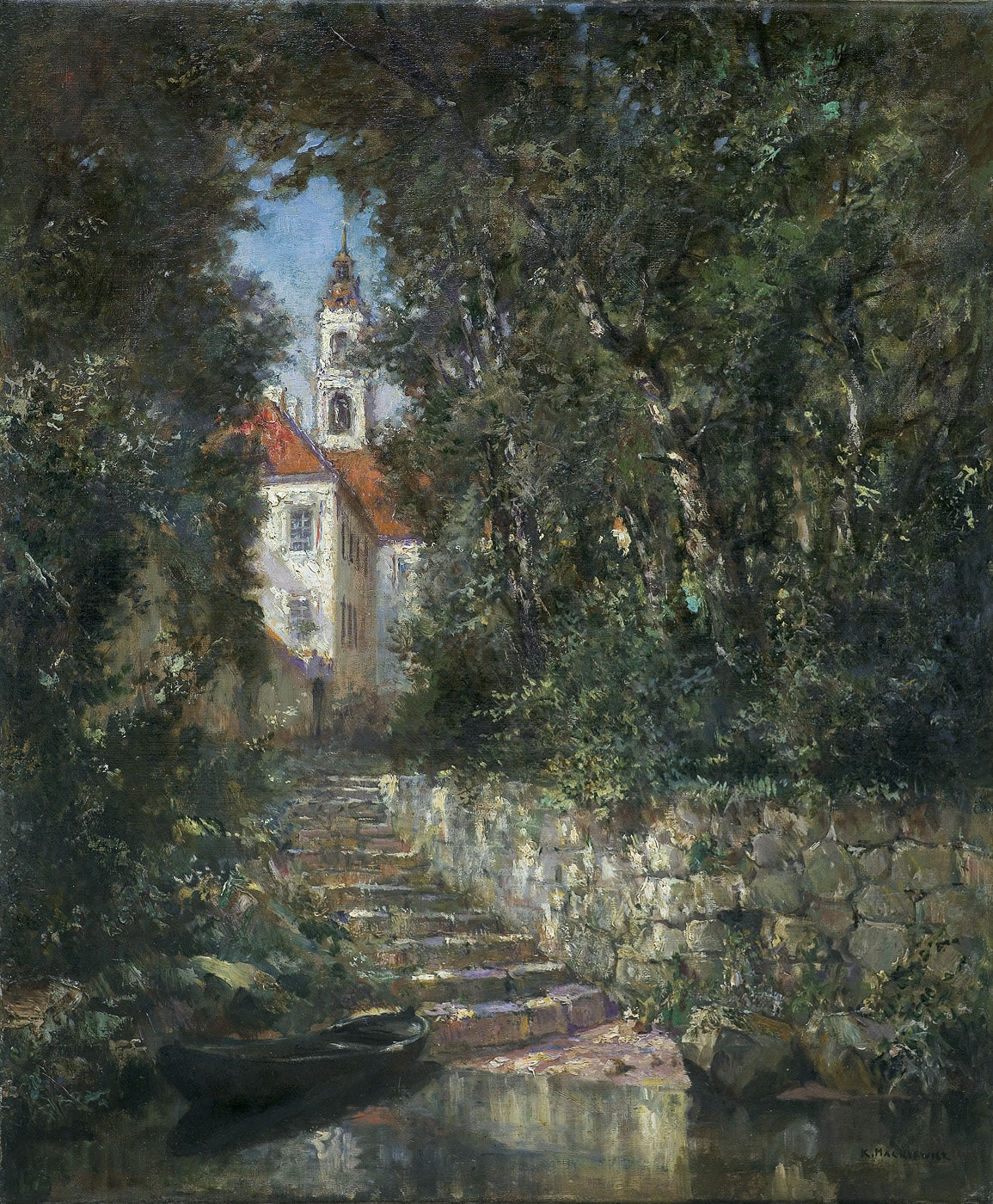 Konstanty Mackiewicz (Małoryta k. Brześcia nad Bugiem 1894 - w Łódź 1985) - malarz i scenograf teatralny; studia artystyczne rozpoczął w Odessie (1913/14), następnie kształcił się w Penzie (1914-1919), a później w pracowni Wassila Kandinsky’ego w moskiewskiej Wyższej Szkole Malarstwa, Rzeźby i Architektury. Od roku 1922 mieszkał we Lwowie, gdzie pracował jako scenograf teatralny. W roku 1926 przeniósł się na stałe do Łodzi i pracował w Teatrze Miejskim. Był członkiem ugrupowań artystycznych „Rytm” i „Start”, wiele wystawiał, m.in. w Zachęcie i w Salonach IPS-u w Warszawie oraz za granicą, m.in. w Brukseli (1933), w Paryżu (1937; dwa złote medale) i w Nowym Jorku (1939). Po II wojnie światowej nadal mieszkał w Łodzi, biorąc udział w licznych wystawach. W swojej bogatej i bardzo różnorodnej twórczości nawiązywał do założeń kubizmu, futuryzmu i koloryzmu. Malował zarówno kompozycje abstrakcyjne, jak i realistyczne pejzaże lub martwe natury. Po wojnie stworzył m.in. cykle obrazów Tu byli ludzie, Katedry, Miasto.