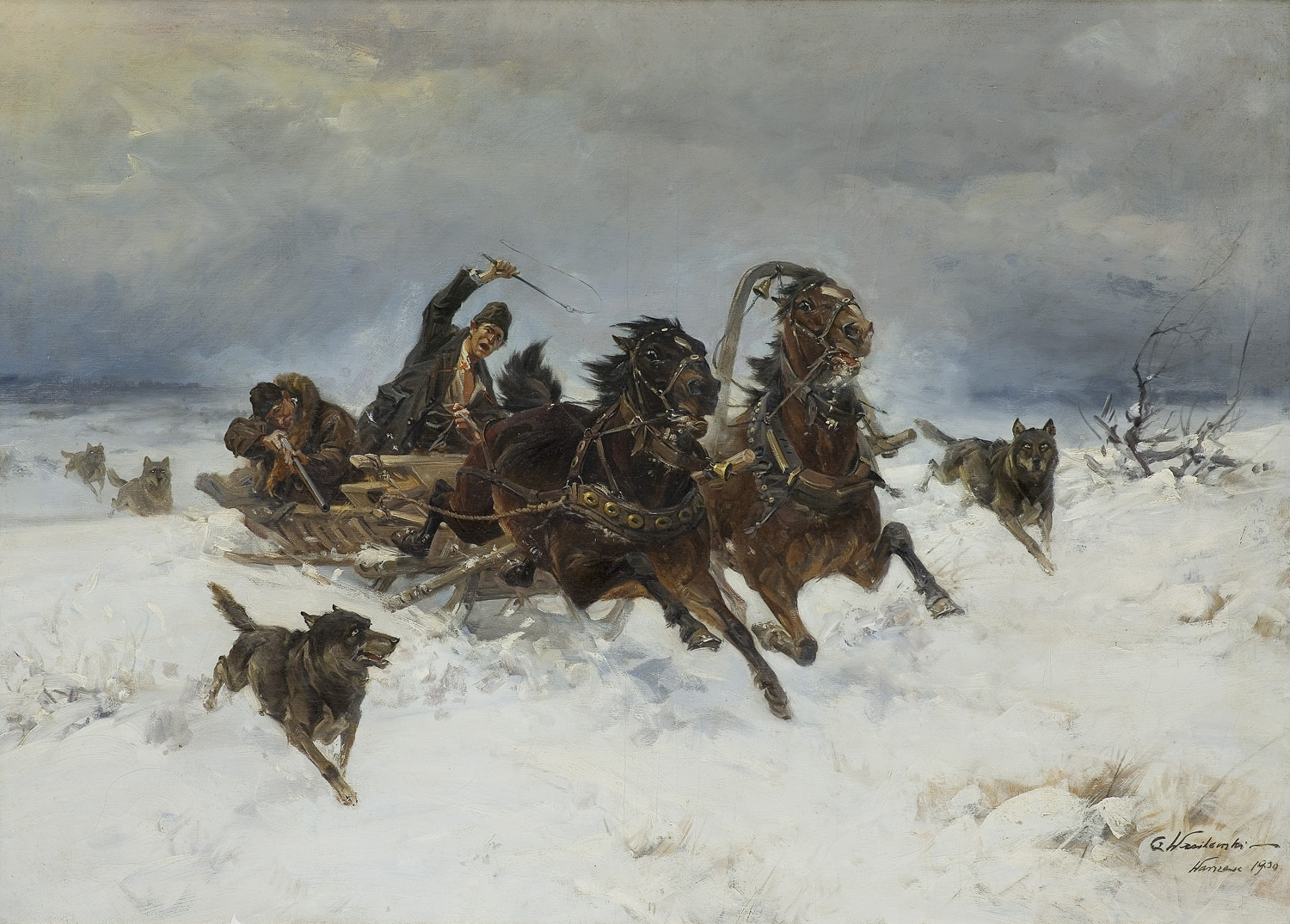 Czesław Wasilewski (ok. 1875 - Warszawa/ Łódź 1946?47) to popularny w okresie międzywojennym warszawski malarz, autor obrazów inspirowanych płótnami Kossaka, Brandta, Chełmońskiego, Wierusza-Kowalskiego czy Fałata. Był samoukiem; wprawdzie w 1911 zapisał się do warszawskiej Szkoły Sztuk Pięknych, ale o jego studiach nic bliższego nie wiadomo. Być może uczęszczał tam (1913-1917) do pracowni Wojciecha Kossaka, dla którego później, na początku lat dwudziestych, przygotowywał podmalówki do obrazów. Uczestniczył w wystawie w Lublinie (1922), wystawiał na Salonach warszawskiej Zachęty (1925,1926, 1927), w Katowicach (1926), Częstochowie (1927), Gdyni (1929), Kaliszu (1931), Poznaniu (1928, 1931). Malował przede wszystkim liczne zaprzęgi, sanny, wyjazdy na polowania, wypadki w podróży, ułanów na patrolu, łosie, sarny i dziki w lesie. Tworzył także nastrojowe pejzaże, wyraźnie inspirowane malarstwem J. Chełmońskiego Rzadziej malował także kwiaty i martwe natury. Utożsamiany z malarzem o nazwisku „Zygmuntowicz”, którego prace pojawiały się na rynku sztuki od trzydziestych lat XX wieku. Stawiany przed tym nazwiskiem inicjał I. lub F., sugerować może imię Ignacy lub Franciszek. Sylwetkę malarza bliżej omówił S. Bołdok w artykule Malarz o dwóch nazwiskach (Art and Business 1992, nr 7-8, s. 48-49).