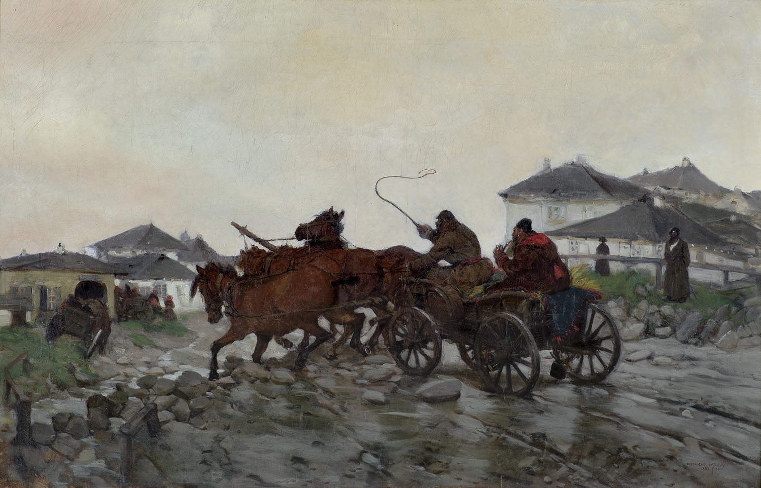 Józef Chełmoński (Boczki k. Łowicza 1849 - Kuklówka k. Grodziska Mazowieckiego 1914) był jednym z najbardziej znanych przedstawicieli polskiego malarstwa realistycznego, twórcą rozległych pejzaży z Ukrainy i Podola, rozpędzonych zaprzęgów końskich - znanych Trojek i Czwórek - oraz wiejskich scen rodzajowych i nastrojowych pejzaży mazowieckich. Artysta - w latach 1867-1871 - kształcił się u Wojciecha Gersona w warszawskiej Klasie Rysunkowej. W latach 1871-1874 przebywał w Monachium, gdzie krótko uczył się w Akademii u Hermanna Anschütza i Alexandra Strähubera, i gdzie znaczny wpływ na jego twórczość wywarło zetknięcie się z polskimi „monachijczykami”, głównie Józefem Brandtem i Maksymilianem Gierymskim. Kolejne dwanaście lat spędził w Paryżu. Pobyt tam przyniósł mu sławę i uznanie – wystawiał na oficjalnych Salonach paryskich, a wiele jego prac znalazło nabywców wśród europejskich i amerykańskich kolekcjonerów. Do kraju wrócił w roku 1887, przez dwa lata mieszkał w Warszawie, a następnie osiadł na stałe w majątku Kuklówka na Mazowszu. Malowane wówczas obrazy to przede wszystkim nastrojowe pejzaże często z motywami ptaków czy zwierząt, w których artysta dawał wyraz swego emocjonalnego i pełnego zachwytu stosunku do natury. Obok twórczości malarskiej Chełmoński zajmował się także grafiką i ilustratorstwem – w latach 1884-1892 współpracował, np. z paryskim „Le Monde Illustré”.