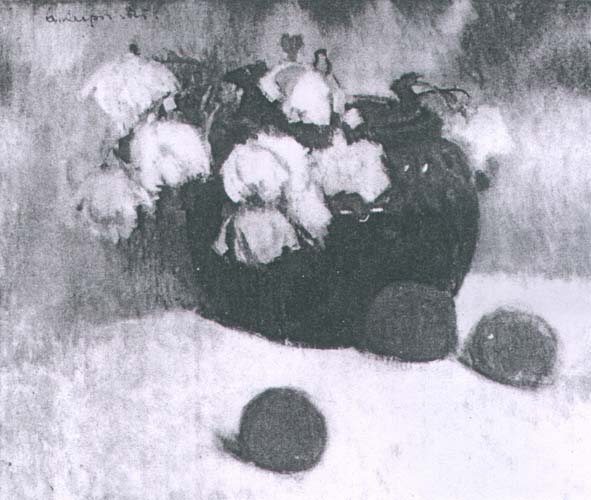 Alfons Karpiński (Rozwadów, dziś dzielnica Stalowej Woli 1875 - Kraków 1961) w latach 1891-1899 studiował w krakowskiej Szkole Sztuk Pięknych pod kierunkiem Floriana Cynka, Izydora Jabłońskiego, Władysława Łuszczkiewicza i Leona Wyczółkowskiego, a następnie kształcił się jeszcze u Antona Ažbégo w Monachium (1903), u Kazimierza Pochwalskiego w Wiedniu, a od 1907 także w Paryżu. Podróżował do Włoch i Londynu. Stale mieszkał w Krakowie; związany z tamtejszym środowiskiem skupionym wokół „Zielonego Balonika” projektował dekoracje do przedstawień kabaretu. Należał do Tow. Artystów Polskich „Sztuka”, grupy „Zero”, był członkiem wiedeńskiego stowarzyszenia „Secesja” i krakowskiego TPSP. Uczestniczył w wielu wystawach w kraju i za granicą. W czasie I wojny światowej służył w armii austriackiej. Na bogatą twórczość artysty składają się wczesne sceny rodzajowe z podkrakowskiej wsi, pejzaże i portrety, wśród nich zwłaszcza portrety kobiece, które przyniosły mu szczególną popularność. Z czasem głównym – obok portretu – tematem jego obrazów stały się martwe natury z kwiatami, dekoracyjne kompozycje o stonowanej gamie barwnej. Artysta zajmował się także grafiką i ilustratorstwem.