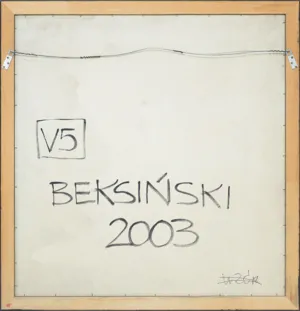 Zdzisław Beksiński (Sanok 24 II 1929 - Warszawa 21 II 2005) studiował w latach 1947-1952 na Wydziale Architektury Politechniki Krakowskiej. Był artystą samoukiem, który osiągnął niekwestionowaną pozycję w polskiej sztuce współczesnej, potwierdzoną obecnością jego prac na prestiżowych wystawach i w kolekcjach muzealnych. Początkowo zajmował się fotografią, którą interesował się od lat studenckich, po 1956 zyskując uznanie jako twórca fotogramów o estetyce opartej o efekty fakturowe. W latach 1958-1962 tworzył abstrakcyjne obrazy-reliefy o bogatej fakturze, głównie metalowe, będące odmianą malarstwa materii. Pod koniec tego okresu powstawały ażurowe formy o kształtach figur i pełnoplastyczne rzeźby w metalu. Kolejnym etapem jego twórczości były lata 1962-1974, kiedy poświęcał się głównie rysunkowi. W latach 60. rysował piórkiem i tuszem figuralne kompozycje odznaczające się karykaturalną deformacją postaci. Od końca lat 60. tworzył rysunki węglem i kredkami, będące monochromatyczną odmianą jego równoległej twórczości malarskiej. Od 1974 zajmował się niemal niepodzielnie malarstwem. Jego charakterystyczny styl bazował na perfekcji technicznej, której towarzyszyła niezwykłość wizji. Malował świat po katastrofie, naznaczony piętnem śmierci i rozpadu. Jego obrazy zaludniają postaci i stwory o ludzkich wprawdzie bądź zwierzęcych kształtach, lecz o cechach fantomów, automatów lub rozpadających się trucheł. Artysta nie nadawał swym obrazom i rysunkom tytułów (poza porządkującymi symbolami), akcentując w ten sposób swój brak zainteresowania dla literackiej strony przedstawień. Sam mówił, że malując całkowicie poddaje się wizji, „fotografuje“ ją. W ostatnich latach włączył do swego warsztatu artystycznego elektroniczne techniki generowania obrazu, które wykorzystywał do tworzenia komputerowych fotomontaży. Sztuka Beksińskiego, wielokrotnie wystawiana i omawiana, budzi skrajne emocje wśród znawców i publiczności.
