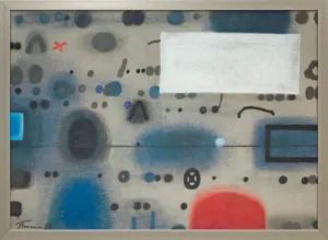 Jan Tarasin (Kalisz 11 IX 1926 - Warszawa 8 VIII 2009) studiował malarstwo w ASP w Krakowie pod kierunkiem prof. Zbigniewa Pronaszki (1946-1951). Jeszcze jako student zadebiutował na I Wystawie Sztuki Nowoczesnej w Krakowie w 1948/49. W połowie lat 50. stworzył cykle litografii: „Nowa Huta i jej mieszkańcy“, 1954, „Dom“, 1955). W pierwszym przeciwstawił się oficjalnemu optymizmowi, w drugim, operując symboliką martwej natury, zawarł treści egzystencjalne i odnoszące do niedawnego dramatu wojny. Po 1956 zaczął malować obrazy niefiguratywne. Układy wyodrębnionych elementów (określanych jako „przedmioty“) umieszczane były przez artystę na płaszczyźnie (cykl „Wnętrze“, 1957) ), lub w aluzyjnej przestrzeni (cykle „Uczta“, 1957, „Brzeg“, 1962-1964, „Przedmioty policzone“, od 1968, „Antykwariat“, 1968). Zasada ta utrzymuje się w jego malarstwie w następnych latach, różnice między okresami twórczości dotyczą sposobu opracowania „przedmiotów“ i ich usytuowania w przestrzeni obrazu lub wobec tła. Od lat 70. „przedmioty“ zmieniają się w graficzne, zwykle czarne znaki na jasnych tłach (cykl „Kolekcja“, od 1971). Tła z kolei bywają iluzyjnie przestrzenne, zróżnicowane walorowo, miękkie. W latach 90. artysta wrócił do kolorystycznego, bardziej malarskiego rozwiązywania zarówno znaków, jak i teł, często ciemnych lub przenikających się z „przedmiotami“ (cykl „Wylęgarnia przedmiotów“, 1992). Tarasin od 1962 jest członkiem „Grupy Krakowskiej“. W 1963-67 uczył na Wydziale Architektury Wnętrz krakowskiej ASP. W 1967 przeniósł się do Warszawy, w 1974 podjął pracę pedagogiczną na Wydziale Malarstwa ASP w Warszawie. W 1987-90 był rektorem tej uczelni. W 1976 otrzymał Nagrodę Krytyki Artystycznej im. Cypriana Kamila Norwida, w 1984 Nagrodę im. Jana Cybisa.; Nagroda na MB Sztuki w San Marino 1965. Równolegle z malarstwem zajmował się rysunkiem i grafiką - do lat 60. litografią, od 1974 serigrafią. W 1974-1981 wydał 8 autorskich „Zeszytów“ z serigrafiami i własnymi tekstami. W 1995 w Galerii Zachęta odbyła się wystawa artysty, której towarzyszył monograficzny katalog.
