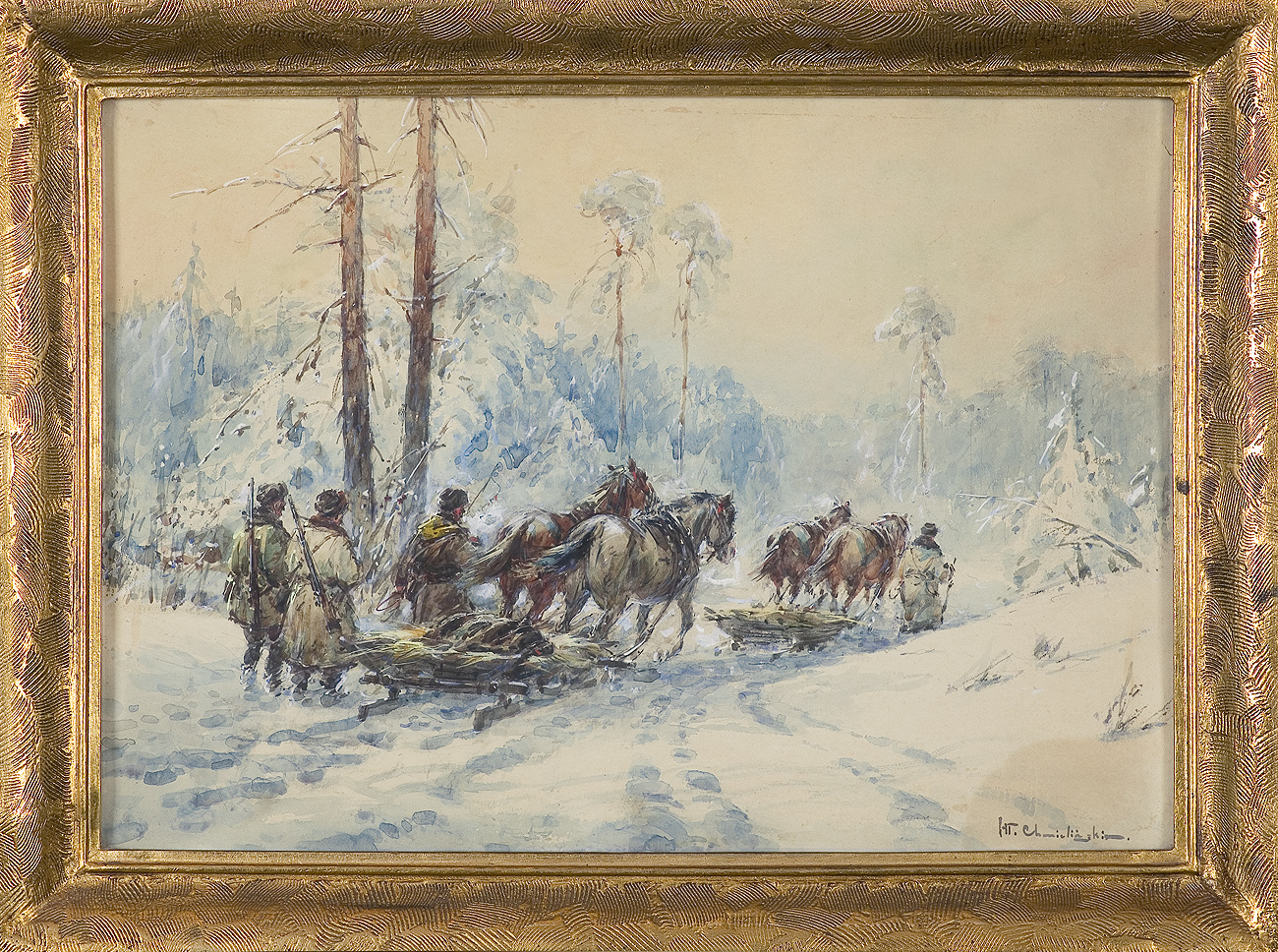 Władysław Chmieliński (Warszawa 1911 - Warszawa 1979) był malarzem związanym z Warszawą, gdzie stale mieszkał i pracował. W latach 1926-1931 studiował w warszawskiej Miejskiej Szkole Sztuk Zdobniczych i Malarstwa (dawna Klasa Rysunkowa). Wiodącym tematem jego obrazów były widoki miejskie, malowane olejno i akwarelą. W latach 1935-1938 stworzył cykl akwarel przedstawiających obiekty polskiej architektury; wśród nich, widoki Sandomierza, Krakowa, Kazimierza nad Wisłą, a także wnętrza zabytkowych kościołów czy pałaców, m.in. Zamku Królewskiego w Warszawie i Pałacu w Wilanowie. Malował także pejzaże i wiejskie sceny rodzajowe – kuligi, sanny, zaprzęgi, wesela, konie na tle krajobrazu. W latach 1967-1969 wyjeżdżał na dłuższe pobyty do Danii. W latach 1936-1939 artysta używał także pseudonimu „Władysław Stachowicz”.