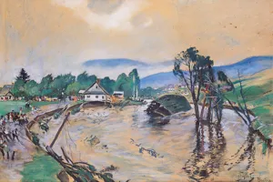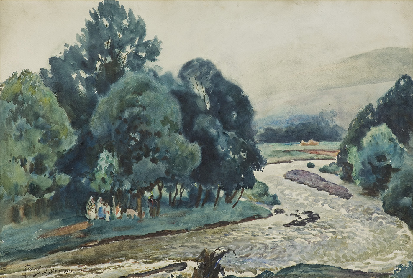 Julian Fałat (Tuligłowy [okręg lwowski] 1853 - Bystra k. Bielska 1929) - malarz i pedagog - jeden z najwybitniejszych artystów polskich okresu przełomu XIX i XX wieku, członek polskich i europejskich stowarzyszeń twórczych oraz Królewskiej Akademii Sztuk Pięknych w Berlinie, wielokrotnie odznaczany medalami na wystawach międzynarodowych. Studiował malarstwo u Władysława Łuszczkiewicza i Leona Dembowskiego w Szkole Sztuk Pięknych w Krakowie (1868-71 i 1881) i w Akademii Sztuk Pięknych w Monachium u Alexandra Strähubera i Johana Leonhardta Raaba (1877-80). Po studiach spędził kilka miesięcy w Rzymie, w 1884 był w Paryżu i w Hiszpanii, a w 1885 odbył podróż morską dookoła świata. W 1886 podczas polowania u ks. Radziwiłłów w Nieświeżu poznał późniejszego cesarza Niemiec Wilhelma II - dla którego następnie w latach 1886-95 pracował w Berlinie jako malarz nadworny. W latach 1894-96 współpracował z Wojciechem Kossakiem przy panoramie Berezyna. W 1895 został powołany na stanowisko dyrektora Szkoły Sztuk Pięknych w Krakowie, w której gruntownie zreformował system nauczania, przekształcając tę uczelnię w nowoczesną Akademię Sztuk Pięknych (r.1900). Do roku 1910 był rektorem Akademii; po przejściu na emeryturę osiadł w miejscowości Bystra k. Bielska. Znakomity akwarelista, malował także olejno. We wcześniejszym okresie tworzył w konwencji realistycznej, z czasem rozjaśnił i wzbogacił paletę, a w akwarelach wprowadzał rozlewną plamę barwną. Zasłynął jako malarz scen myśliwskich rozgrywających się najczęściej w zimowej scenerii; malował też pejzaże, wiejskie sceny rodzajowe, portrety, widoki miejskie.