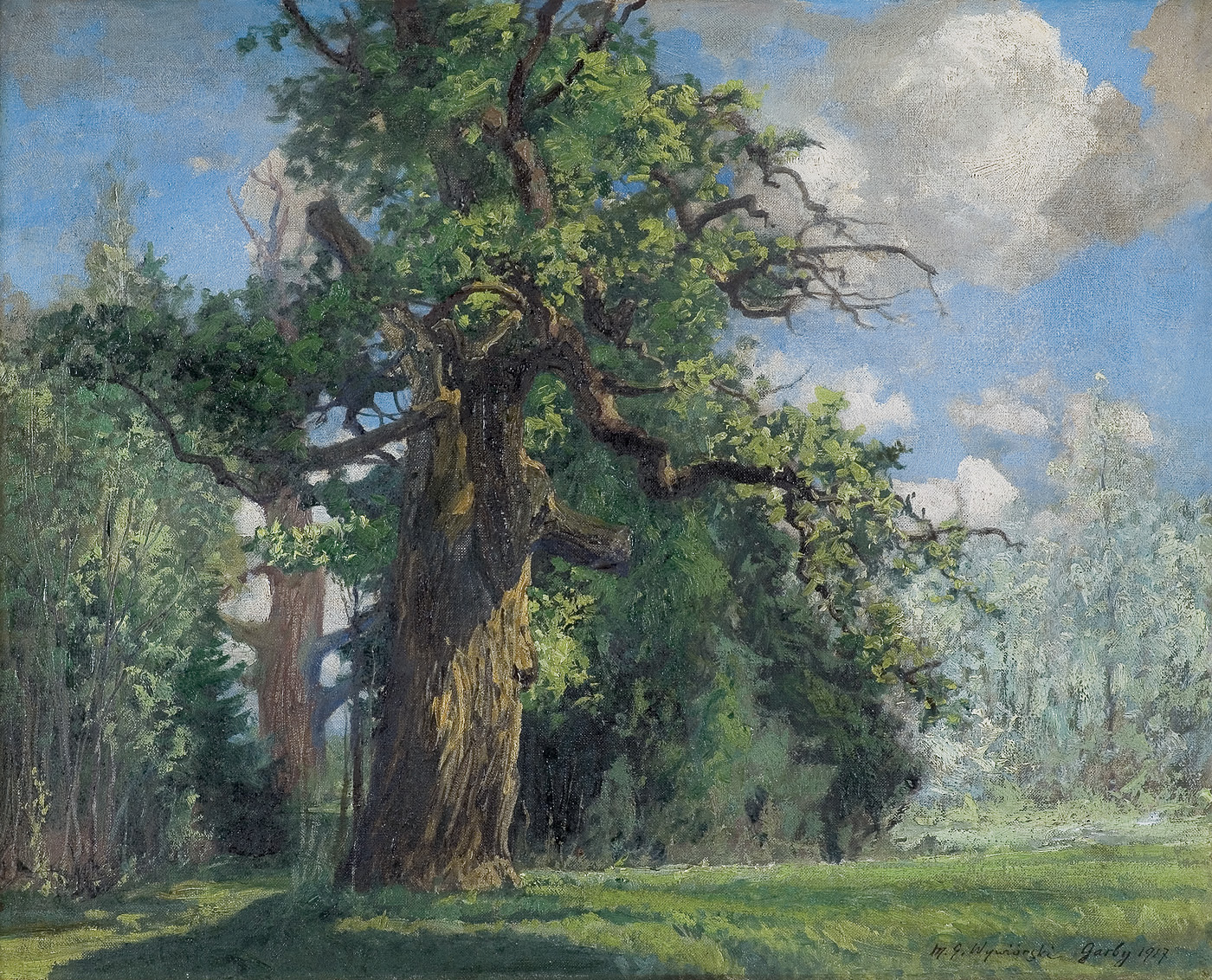 Michał Gorstkin Wywiórski (Warszawa 1861 - Berlin 1926) w latach 1883-1887 studiował w Monachium; w Akademii u profesorów Karla Raupa i Nikolausa Gysisa oraz równolegle w prywatnych pracowniach Józefa Brandta i Alfreda Wierusza-Kowalskiego. W 1884 debiutował na wystawie w krakowskim TPSP, swoje prace pokazywał też w Monachium, gdzie w 1894 na międzynarodowej wystawie w Glaspalast został wyróżniony medalem za obraz Z puszczy litewskiej. W 1895 przeniósł się do Berlina, zaproszony przez Wojciecha Kossaka i Juliana Fałata do pracy przy panoramie Berezyna (1895-1896). W Berlinie zamieszkał na dłużej, a następnie przebywał w Wielkopolsce i w Warszawie. Współpracował też z Janem Styką przy panoramie Bitwa pod Sybinem (1897), a w 1900 wspólnie z Kossakiem podróżował do Hiszpanii i Egiptu, aby wykonać szkice plenerowe do zamierzonych panoram Somosierra (nie zrealizowana) i Bitwa pod piramidami (1901). Wyjeżdżał także na Litwę, wyspę Sylt, do Norwegii, Szwecji, nad Morze Północne i Bałtyk, malował w Amsterdamie, na Krymie i Kaukazie. We wczesnej fazie twórczości, pod silnym wpływem Brandta i Wierusza-Kowalskiego, malował sceny myśliwskie i rodzajowe oraz obrazy z Tatarami, Kozakami czy Czerkiesami, które przyniosły mu powodzenie na monachijskim rynku sztuki. Z czasem naczelnym tematem jego malarstwa stał się czysty pejzaż, postrzegany i malowany wrażliwie i z upodobaniem.