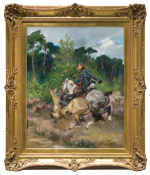Wojciech Kossak (Paryż 1856 - Kraków 1942 ) – powszechnie znany malarz, postrzegany przede wszystkim jako świetny batalista. Syn i uczeń Juliusza Kossaka kształcił się w krakowskiej Szkole Sztuk Pięknych, w Akademii monachijskiej oraz w Paryżu. W latach 1895-1902 przebywał głównie w Berlinie, pracując dla cesarza Wilhelma II. Wiele podróżował, m.in. do Hiszpanii i Egiptu, gdzie wykonywał szkice do zamierzonych panoram. W późniejszych latach kilkakrotnie wyjeżdżał do Stanów Zjednoczonych wykonując zamówienia portretowe. W 1913 był mianowany profesorem warszawskiej Szkoły Sztuk Pięknych. W latach I wojny światowej pełnił służbę wojskową. Był współautorem panoram: „Racławice” (1893-1894), „Berezyna” (1895-1896), „Bitwa pod piramidami” (1901) oraz szkiców do niezrealizowanej „Somosierry” (1900). Z temperamentem i swobodą tworzył szeroko malowane, dynamiczne sceny batalistyczne, historyczne, rodzajowe oraz liczne portrety. Z upodobaniem malował konie. Jego obrazy, gloryfikujące dawne i współczesne artyście polskie wojsko i bohaterstwo żołnierzy, trafiały do patriotycznych uczuć odbiorców i cieszyły się ogromna popularnością.