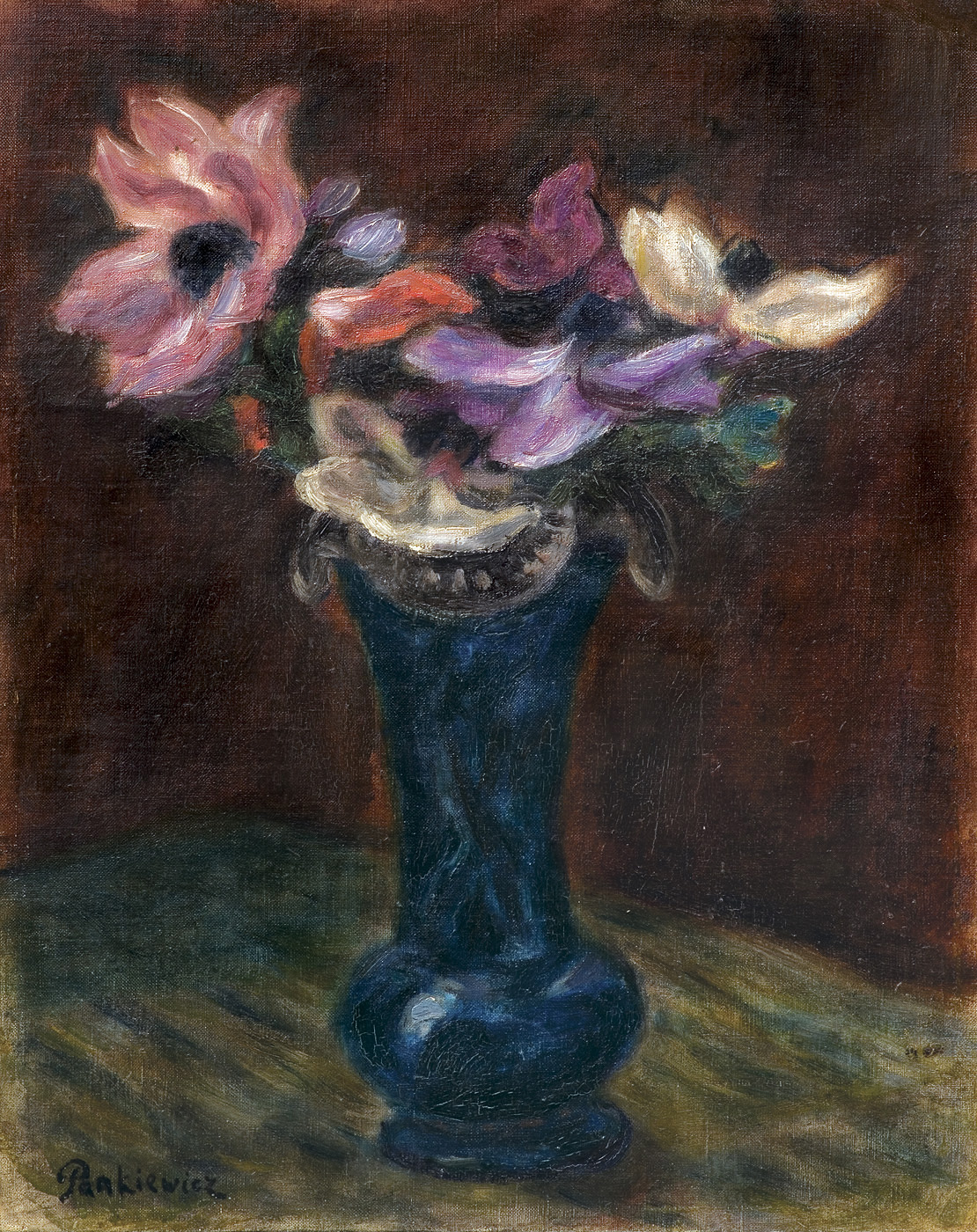 Józef Pankiewicz (Lublin 1866 – Marsylia 1940) malarz, grafik, pedagog; w latach 1884-1885 był uczniem Wojciecha Gersona i Aleksandra Kamińskiego w warszawskiej Klasie Rysunkowej. Następnie przez rok studiował w ASP w Petersburgu. Po powrocie mieszkał w Warszawie. Malował wówczas realistyczne sceny rodzajowe, wykonywał też ilustracje do warszawskich czasopism. W 1889 wraz z Władysławem Podkowińskim wyjechał do Paryża i tam uległ fascynacji impresjonizmem. U schyłku stulecia tworzył nokturny i kompozycje symboliczne. W latach następnych wiele podróżował po Europie malując martwe natury, pejzaże i portrety inspirowane sztuką japońską oraz malarstwem Renoira, Cezanne’e, Matisse’a. Lata 1914-1919 spędził w Hiszpanii. Od 1906 był profesorem krakowskiej ASP, a od 1925 kierował, powstałą pod jego protektoratem, paryską filią tej uczelni. Był nauczycielem wielu malarzy-kolorystów z tzw. grupy kapistów. W tym czasie stale mieszkał w Paryżu, a letnie miesiące spędzał na południu Francji. Zajmował się grafiką - jego prace należą do najwybitniejszych osiągnięć w tej dziedzinie sztuki polskiej. W roku 2006 w Muzeum Narodowym w Warszawie odbyła się wielka wystawa „Józef Pankiewicz. Życie i dzieło”, której towarzyszył obszerny katalog, będącym świetnie opracowaną, wyczerpującą monografią artysty i jego twórczości.