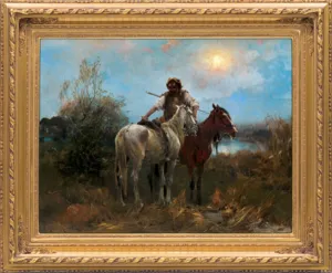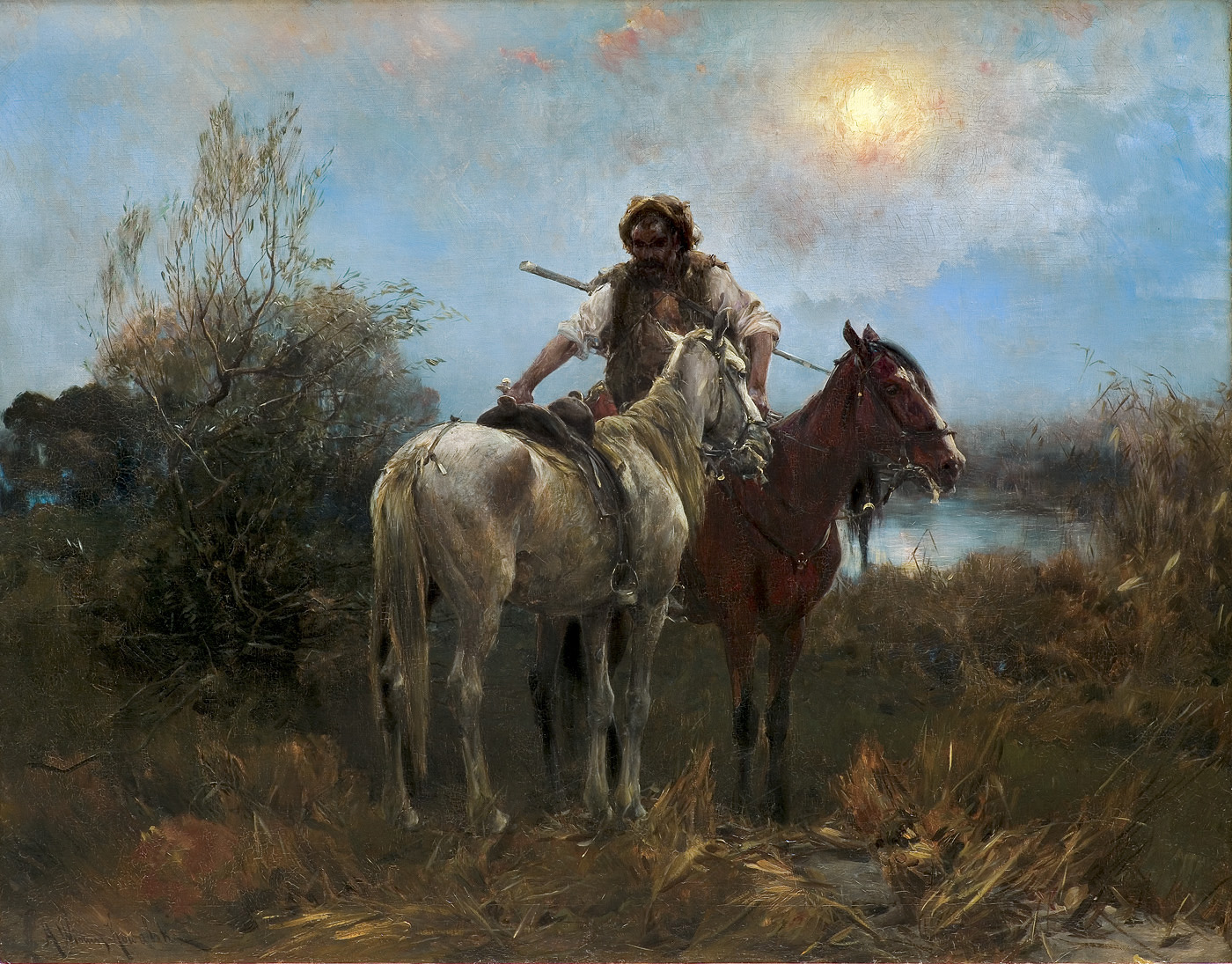 Alfred Wierusz-Kowalski (Suwałki 1849 – Monachium 1915) - jeden z najwybitniejszych polskich malarzy tzw. szkoły monachijskiej był, obok Józefa Brandta i Władysława Czachórskiego, także najpopularniejszym z polskich artystów osiadłych i stale działających w Monachium. Zamieszkał tam w roku 1873, już po studiach w Warszawie i w Dreźnie. Przez rok uczył się jeszcze w monachijskiej Akademii Sztuk Pięknych pod kierunkiem Alexandra Wagnera, a następnie przeniósł się do prywatnej pracowni Brandta. Uznanie krytyki i publiczności zdobył wcześnie; jego obrazy, odznaczane medalami na wystawach były rozchwytywane przez kolekcjonerów i niemieckich handlarzy. W roku 1890 został honorowym profesorem Akademii monachijskiej. Malował sceny rodzajowe i rodzajowo-historyczne z motywami jeźdźców, rycerzy, myśliwych, koni, wilków i śniegów. Po podróży do Afryki w roku 1903 podejmował też tematy orientalne. W polskich zbiorach muzealnych znalazło się stosunkowo niewiele prac artysty – jego obrazy sprzedawane głównie na rynku niemieckim w większej liczbie trafiały do kolekcji prywatnych, głównie w Niemczech i Stanach Zjednoczonych. Obecne często pojawiają się i na polskim rynku sztuki, zawsze budząc zainteresowanie kolekcjonerów.