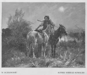 Obraz W oczekiwaniu w roku 1904 był reprodukowany w „Tygodniku Ilustrowanym”, gdzie opatrzony został następującą uwagą krytyka: jak wszystkie obrazy Kowalskiego osnute na tle życia kresowego b. Rzeczypospolitej Polskiej, tak i niniejszy utwór odznacza się głębokim odczuciem poetyczno-rycerskiego charakteru [...] epoki. Istotnie, artysta niezwykle sugestywnie odtworzył senny nastrój łagodnej, księżycowej nocy gdzieś na dzikich polach Ukrainy. S...