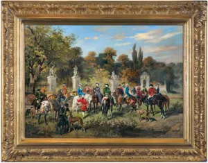 Juliusz Kossak (Wiśnicz 1824 - Kraków 1899) - malarz i ilustrator - był jednym z najpopularniejszych artystów polskich 2. połowy XIX wieku. Naukę rysunku i malarstwa rozpoczął we lwowskiej pracowni Jana Maszkowskiego; później wiele rysował z natury odwiedzając majątki szlacheckie na Ukrainie, Podolu i Wołyniu. W roku 1852 był w Wiedniu, na Węgrzech i w Petersburgu, a następnie zamieszkał na stałe w Warszawie. Lata 1856-1860 spędził w Paryżu, gdzie przyjaźnił się z Horacem Vernetem. Powróciwszy do Warszawy w latach 1862-1868 był kierownikiem artystycznym „Tygodnika Ilustrowanego”. W roku 1869 przeniósł się na stałe do Krakowa, skąd wyjeżdżał jeszcze do Monachium, by malować w atelier batalisty Franza Adama. Kossak był przede wszystkim znakomitym akwarelistą; rzadziej posługiwał się techniką olejną. Malował obrazy historyczne i batalistyczne, sceny rodzajowe ilustrujące życie i tradycje dworu szlacheckiego oraz obyczaje polskiego ludu. Ale prawdziwymi bohaterami jego obrazów były konie, których ruch, temperament, charakter i indywidualność potrafił po mistrzowsku przedstawić. Był także autorem wielu ilustracji do czasopism i książek, trafiającym bezbłędnie tak w klimat utworów literackich, jak i w tęsknoty i potrzeby odbiorców - czytelników Pieśni o ziemi naszej Wincentego Pola, Trylogii Henryka Sienkiewicza, Pana Tadeusza i poematów Adama Mickiewicza.