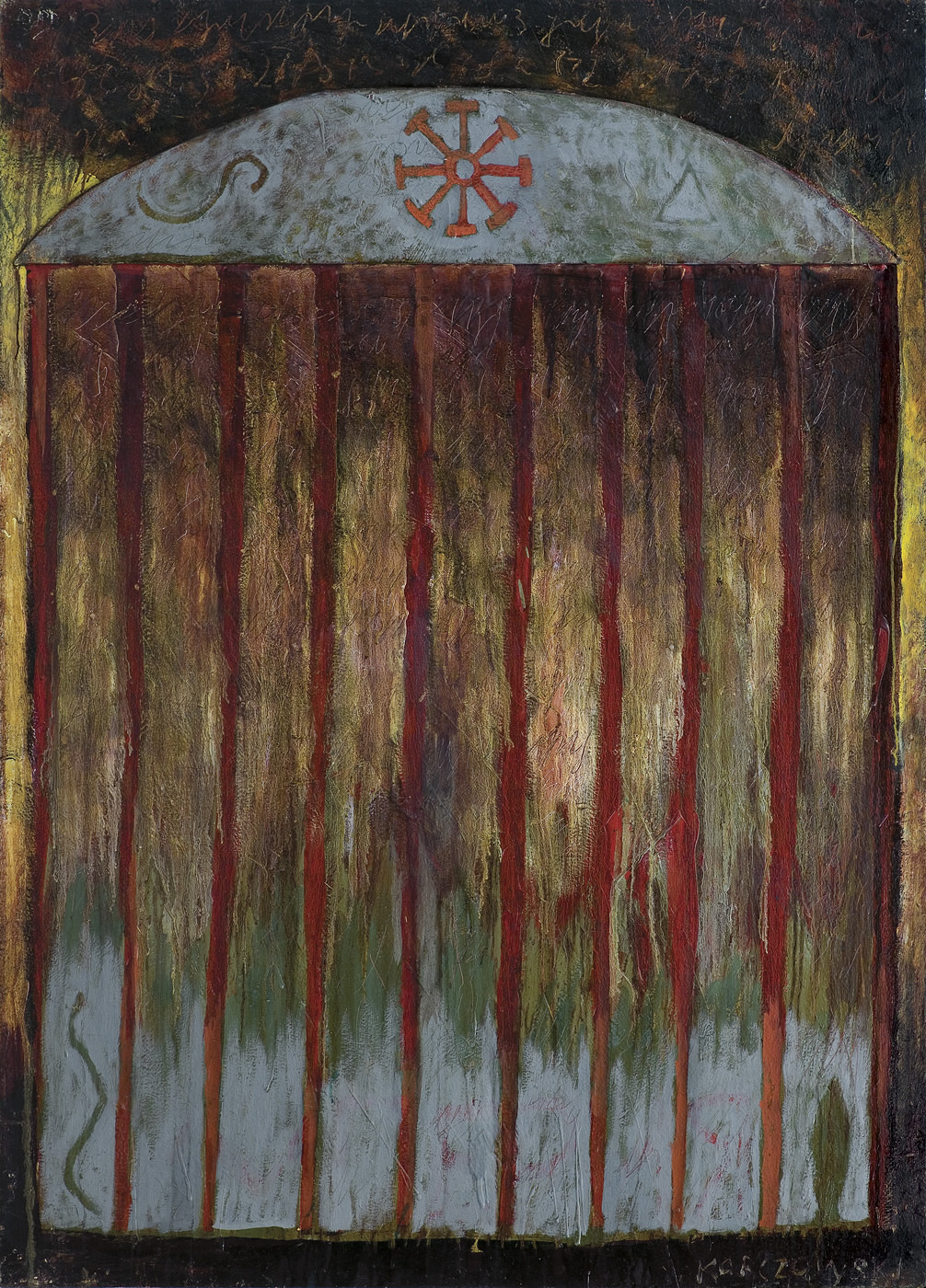 Bogdan Korczowski (Kraków 1954 - mieszka i pracuje we Francji) -studiował grafikę w ASP w Krakowie, dyplom uzyskał w pracowni W. Kunza w 1978. W 1980 osiadł w Paryżu, gdzie ukończył École Nationale Supérieure des Beaux-Arts. W 1988 uzyskał stypendium Fundacji Pollock-Krasner w Nowym Yorku. Malarstwo o mocnej, nasyconej kolorystyce, bogatej fakturze i żywym geście, zbliżone jest w formie do współczesnych kierunków neoekspresjonistycznych w sztuce Europy i Stanów Zjednoczonych. Poczynając od wczesnego cyklu obrazów Listy, powstającego ok. 1980, artysta umieszczał na swych płótnach wyolbrzymione symbole i ideogramy. Często też występują drobne znaki układające się, jak pismo, w równoległe rzędy, nałożone na właściwą kompozycję niczym przesłona. W pracach z lat 90. powstaje cykl "Planety", cykl "Błękitny". Korczowski pozostawał w kraju prawie nieznany aż do wielkiej wystawy indywidualnej w warszawskiej Galerii Zachęta w 1989, której towarzyszył ilustrowany katalog.