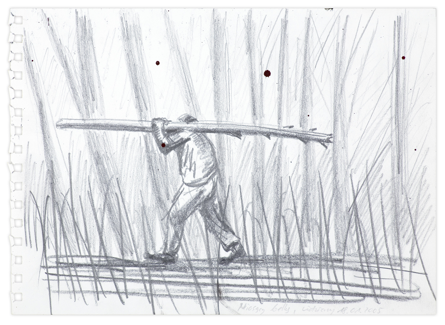 Jarosław Modzelewski (Warszawa 1955, mieszka w Warszawie) studiował malarstwo w ASP w Warszawie w latach 1975-1980, uzyskując dyplom w pracowni Stefana Gierowskiego. Od 1982 pracuje jako pedagog na macierzystym wydziale. W 1982 był współzałożycielem „Gruppy”, najważniejszego ugrupowania nurtu nowej ekspresji lat 80., działającego do 1992. W latach 1991-1996 wspólnie z Markiem Sobczykiem prowadził prywatną Szkołę Sztuki w Warszawie. Od wielu lat współpracuje z Galerią Zderzak w Krakowie. W początkowym okresie twórczości skłaniał się ku abstrakcji, wykorzystywał uproszczone znaki i emblematy oraz sylwetki odbite z szablonu. W 1985 namalował cykl oparty na ilustracjach do podręczników języka rosyjskiego, obrazujący proste czynności, których czasownikowe określenia stanowią tytuły prac. W 1986-1989 powstawały obrazy utrzymane w konwencji realistycznej, jednak zarazem o surrealnej atmosferze uzyskiwanej różnymi metodami, np. przez dublowanie figur, ukazywanie postaci w sytuacji niepewności czy zagrożenia, zabiegi z przestrzenią. W grupie obrazów z 1988 artysta rezygnuje z postaci ludzkiej na rzecz wyjątkowego nasycenia emocją samej przestrzeni pejzaży i wnętrz. Około 1990 wraca do kompozycji akcentujących czynności wykonywane przez postaci, które często umieszczone są w pustej, zaledwie zasugerowanej, acz dominującej przestrzeni. Odrealnienia i monumentalności dodaje tym obrazom płaskie i rozległe kładzenie koloru.