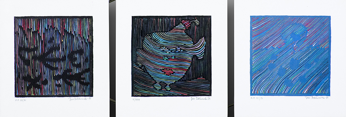 Jan Dobkowski (Łomża 1942, mieszka w Warszawie) studiował w latach 1962-1968 na Wydziale Malarstwa warszawskiej ASP pod kierunkiem prof. Juliusza Studnickiego i Jana Cybisa. Będąc jeszcze na studiach, w 1966, utworzył duet artystyczny, w którym jego partnerem był Jerzy (Jurry) Zieliński. Ich pierwsza wspólna wystawa pn. Neo-Neo-Neo odbyła się w Warszawie w 1967. Wystawiali wspólnie do 1970. W 1968 powstały pierwsze zielono-czerwone obrazy Dobkowskiego (używającego w tym czasie pseudonimu Dobson). W pracach tych, operujących giętkimi, falistymi liniami, w których upatrywano wpływów secesji, artysta używał sposobów rodem z op-artu dla wywołania złudzeń optycznych (wirowanie, mżenie, pozorny ruch form). Równolegle z obrazami tworzył też formy z płyt i folii do montowania w przestrzeni. Złoty medal na Sympozjum Złotego Grona w Zielonej Górze w 1971 i blisko roczny pobyt w USA na stypendium Fundacji Kościuszkowskiej w 1972 to kolejne etapy pełnej sukcesów kariery malarza. Wyraźną zmianę nastroju i wymowy jego prac przyniosły wydarzenia 1980-1981 roku, zwłaszcza wprowadzenie stanu wojennego. Monochromatyczne, ciemne płótna znaczył wtedy nikłymi, wiotkimi liniami rysunku. Najczęstszym motywem były patriotyczne i religijne symbole, dopowiadane tytułami nawiązującymi do realiów czasu. Kolejna radykalna zmiana nastąpiła ok. 1990. Symbolicznym zwiastunem nowego okresu stał się olbrzymi, radosny, eksplodujący bogactwem barw, kształtów i ruchu obraz ...a życie sobie płynie... (394 x 588 cm) z 1990-1991. Podobne cechy formalne charakteryzują twórczość artysty w całej dekadzie lat 90. Równolegle z malarstwem Dobkowski pracuje nad rysunkiem, będącym bardzo ważnym dopełnieniem jego twórczości.