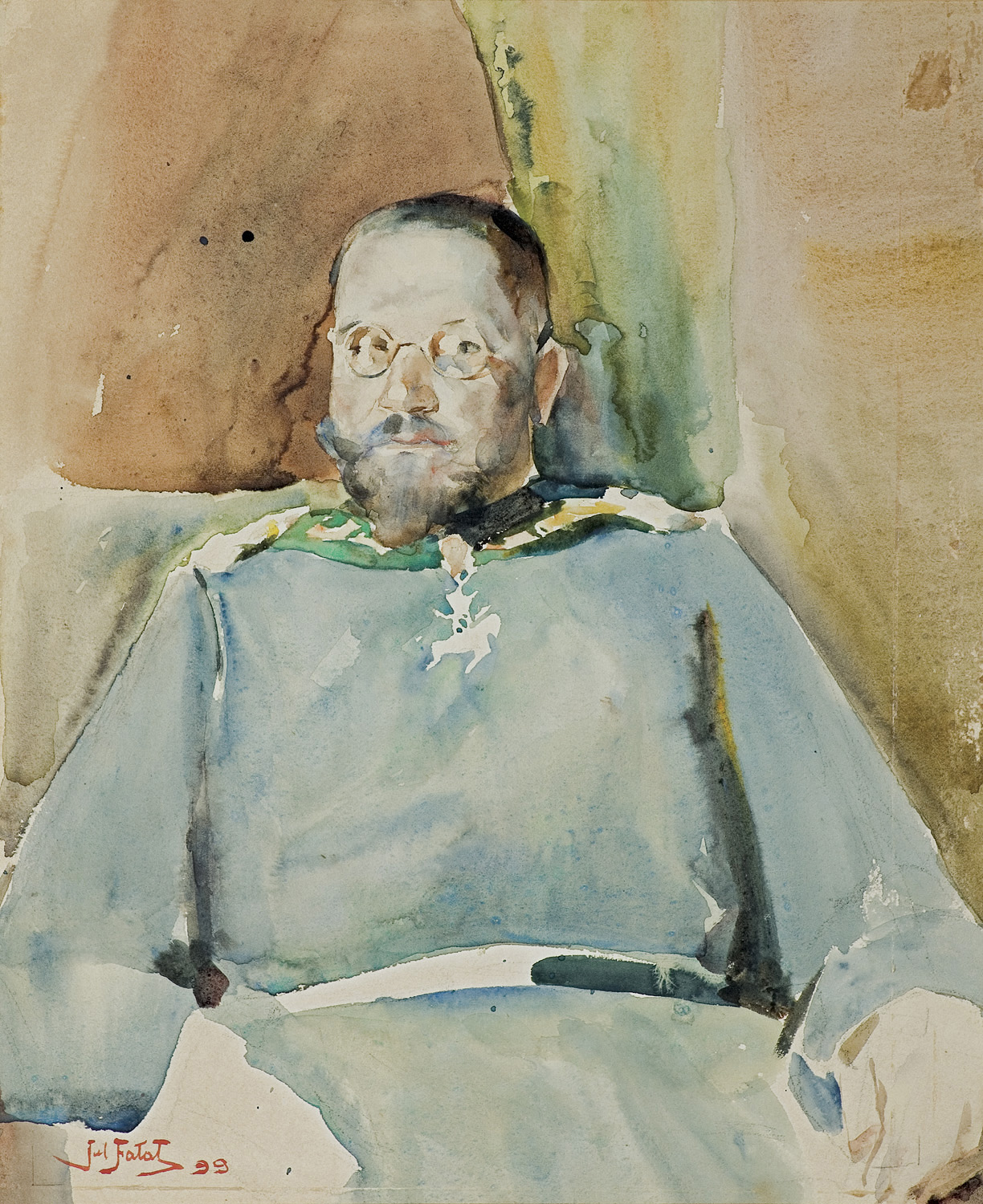 Julian Fałat (Tuligłowy [okręg lwowski] 1853 - Bystra k. Bielska 1929) - malarz i pedagog - jeden z najwybitniejszych artystów polskich okresu przełomu XIX i XX wieku, członek polskich i europejskich stowarzyszeń twórczych oraz Królewskiej Akademii Sztuk Pięknych w Berlinie, wielokrotnie odznaczany medalami na wystawach międzynarodowych. Studiował malarstwo u Władysława Łuszczkiewicza i Leona Dembowskiego w Szkole Sztuk Pięknych w Krakowie (1868-71 i 1881) i w Akademii Sztuk Pięknych w Monachium u Alexandra Strähubera i Johana Leonhardta Raaba (1877-80). Po studiach spędził kilka miesięcy w Rzymie, w 1884 był w Paryżu i w Hiszpanii, a w 1885 odbył podróż morską dookoła świata. W 1886 podczas polowania u ks. Radziwiłłów w Nieświeżu poznał późniejszego cesarza Niemiec Wilhelma II - dla którego następnie w latach 1886-95 pracował w Berlinie jako malarz nadworny. W latach 1894-96 współpracował z Wojciechem Kossakiem przy panoramie Berezyna. W 1895 został powołany na stanowisko dyrektora Szkoły Sztuk Pięknych w Krakowie, w której gruntownie zreformował system nauczania, przekształcając tę uczelnię w nowoczesną Akademię Sztuk Pięknych (r.1900). Do roku 1910 był rektorem Akademii; po przejściu na emeryturę osiadł w miejscowości Bystra k. Bielska. Znakomity akwarelista, malował także olejno. We wcześniejszym okresie tworzył w konwencji realistycznej, z czasem rozjaśnił i wzbogacił paletę, a w akwarelach wprowadzał rozlewną plamę barwną. Zasłynął jako malarz scen myśliwskich rozgrywających się najczęściej w zimowej scenerii; malował też pejzaże, wiejskie sceny rodzajowe, portrety, widoki miejskie.