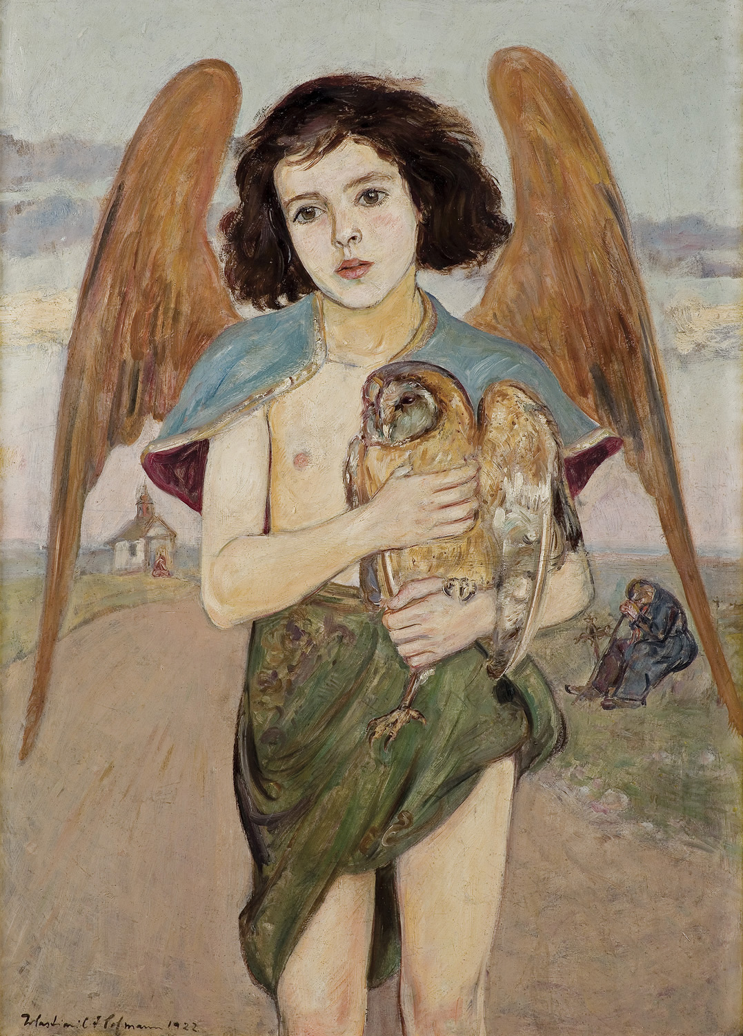 Wlastimil Hofman / Vlastimil Hofmann (Praga 1881 - Szklarska Poręba 1970) studiował w krakowskiej Szkole Sztuk Pięknych - początkowo pod kierunkiem Floriana Cynka, później także u Jana Stanisławskiego, Leona Wyczółkowskiego i Jacka Malczewskiego. W latach 1899-1902 uczył się jeszcze u Jeana Léona Gérôme’a w paryskiej École des Beaux-Arts. W czasie I wojny światowej przebywał w Pradze i w Paryżu; od 1920 stale mieszkał w Krakowie. Dużo wystawiał; należał do wielu stowarzyszeń twórczych - był współzałożycielem „Grupy Pięciu” (1905) i „Grupy Zero” (1908), członkiem Związku Artystów Czeskich „Manes”, a od 1911 członkiem Tow. Artystów Polskich „Sztuka”. W czasie II wojny światowej poprzez ZSRR i Turcję przedostał się do Jerozolimy, skąd w roku 1946 wrócił do Krakowa. Od roku 1947 stale mieszkał w Szklarskiej Porębie. Hofman malował przede wszystkim fantastyczno-symboliczne kompozycje o motywach ludowych oraz sceny rodzajowe, portrety i pejzaże. Jego obrazy mimo bliskich analogii i powiązań ze sztuką Malczewskiego odznaczają się zawsze indywidualnym charakterem, stylem i nastrojem.